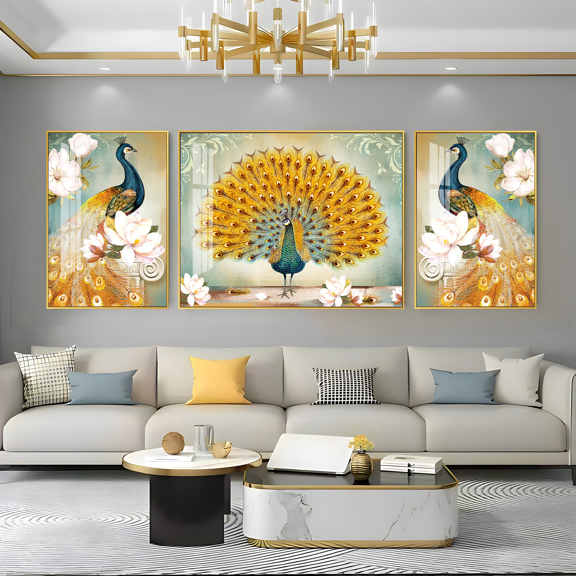 Regal Feathers Glass Finish Wall Art (Set Of 3)