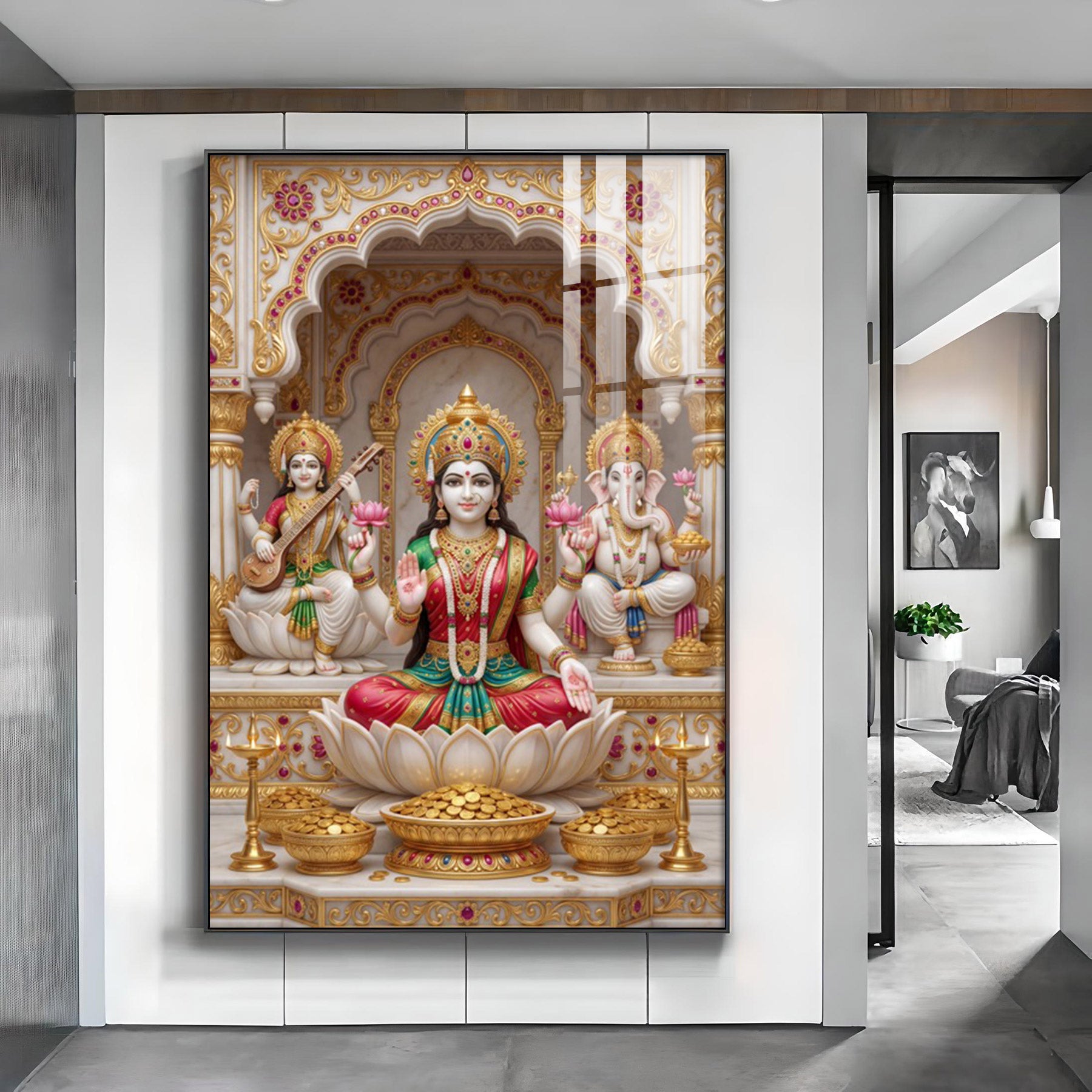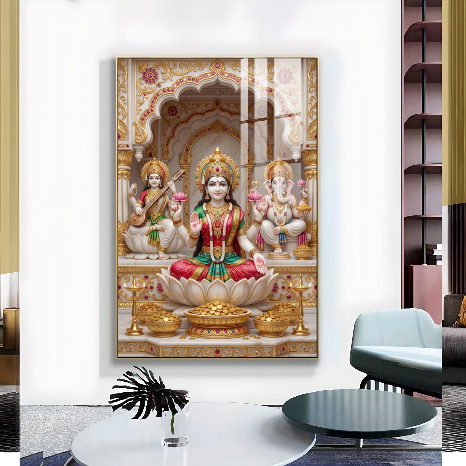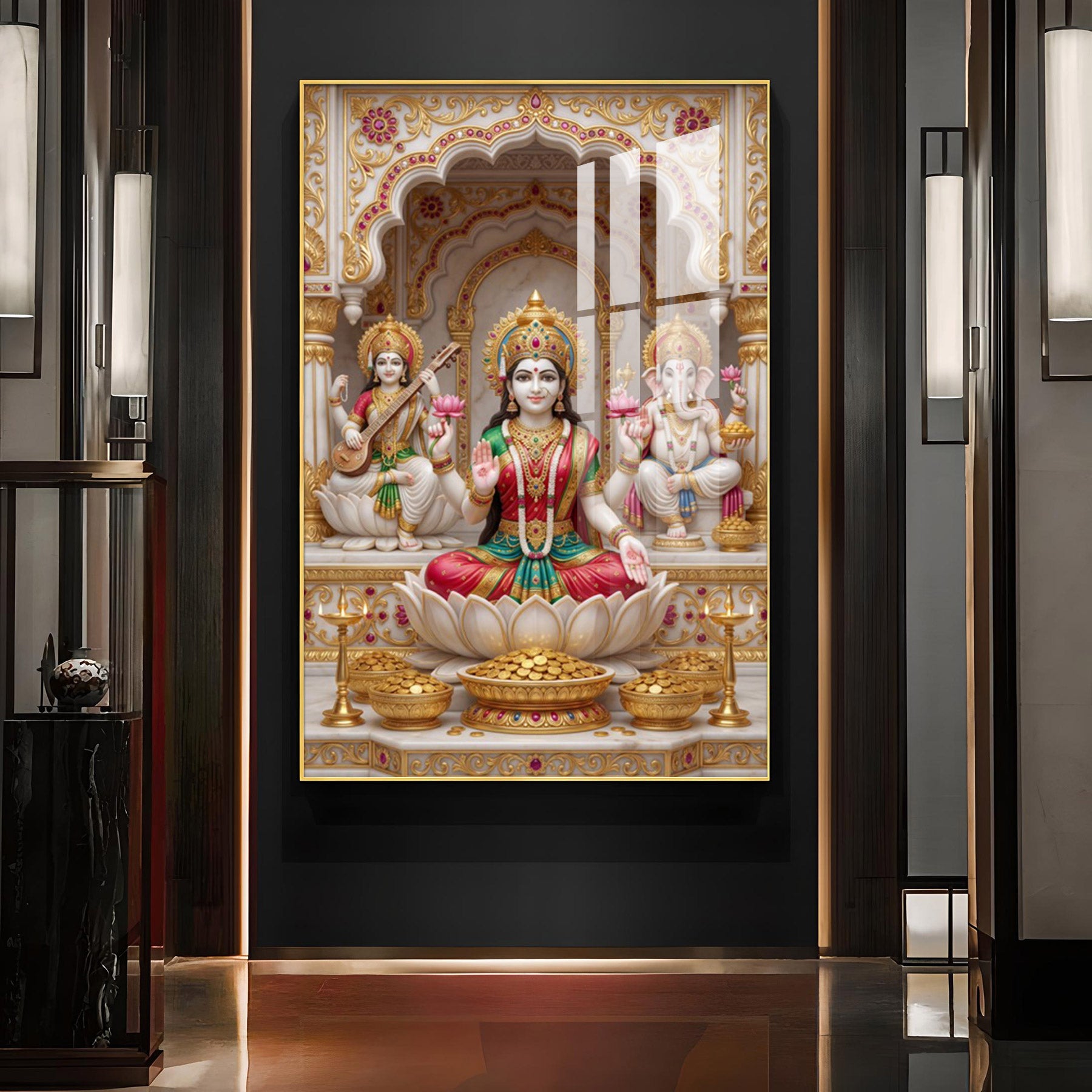 Religious Maa Laxmi Glass Finish Vertical Wall Art