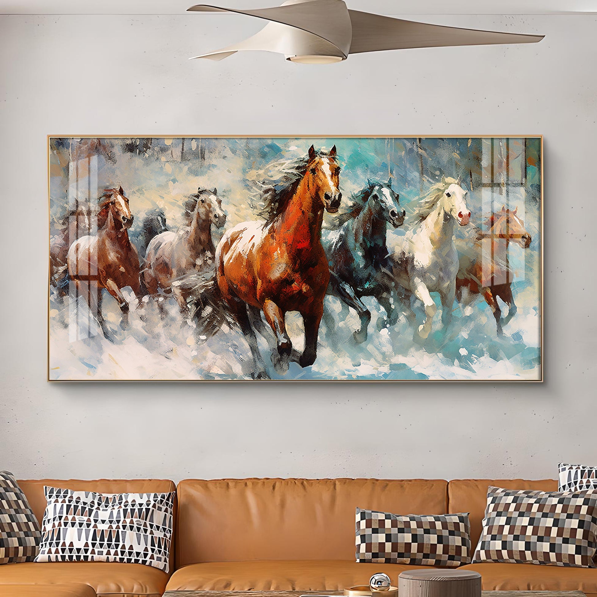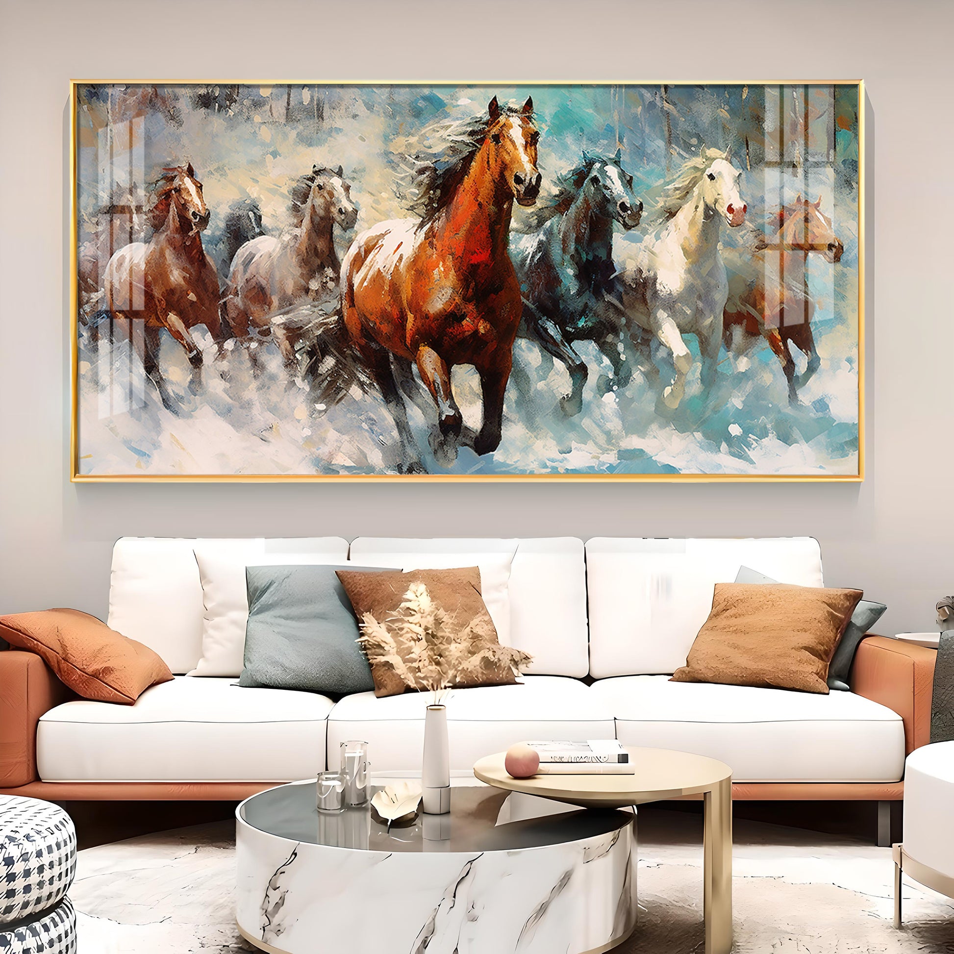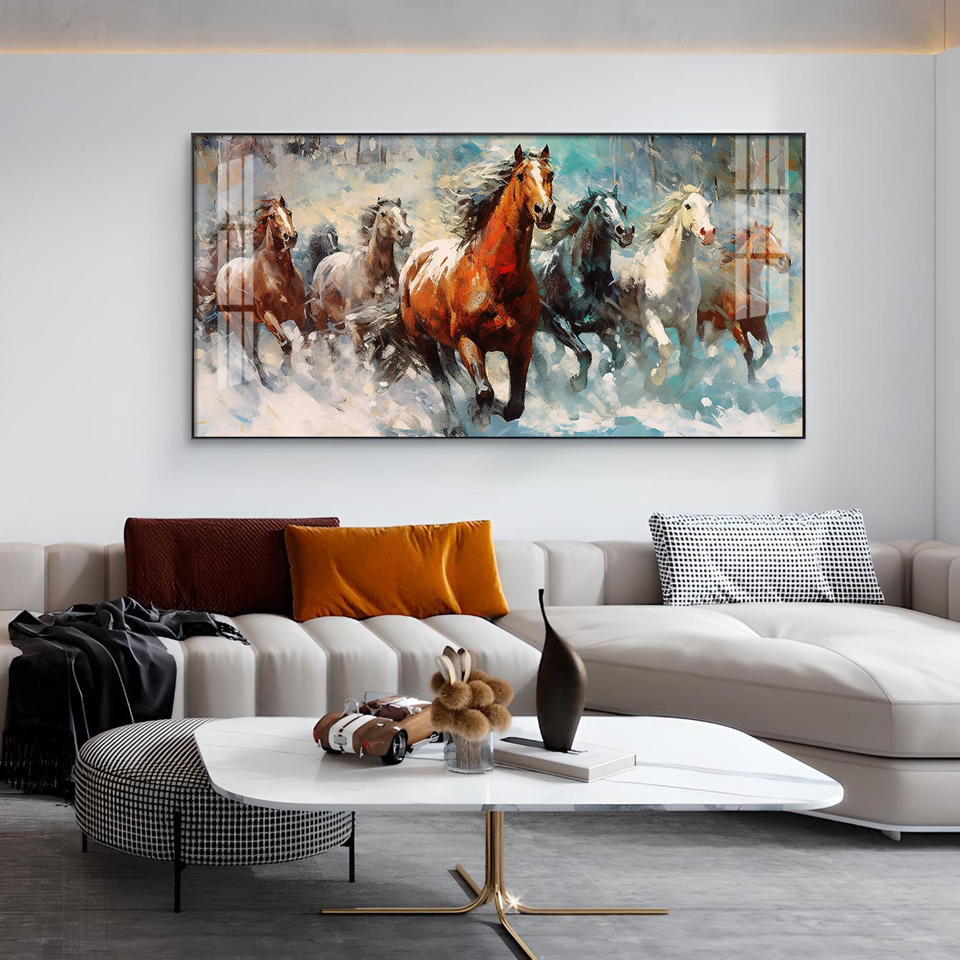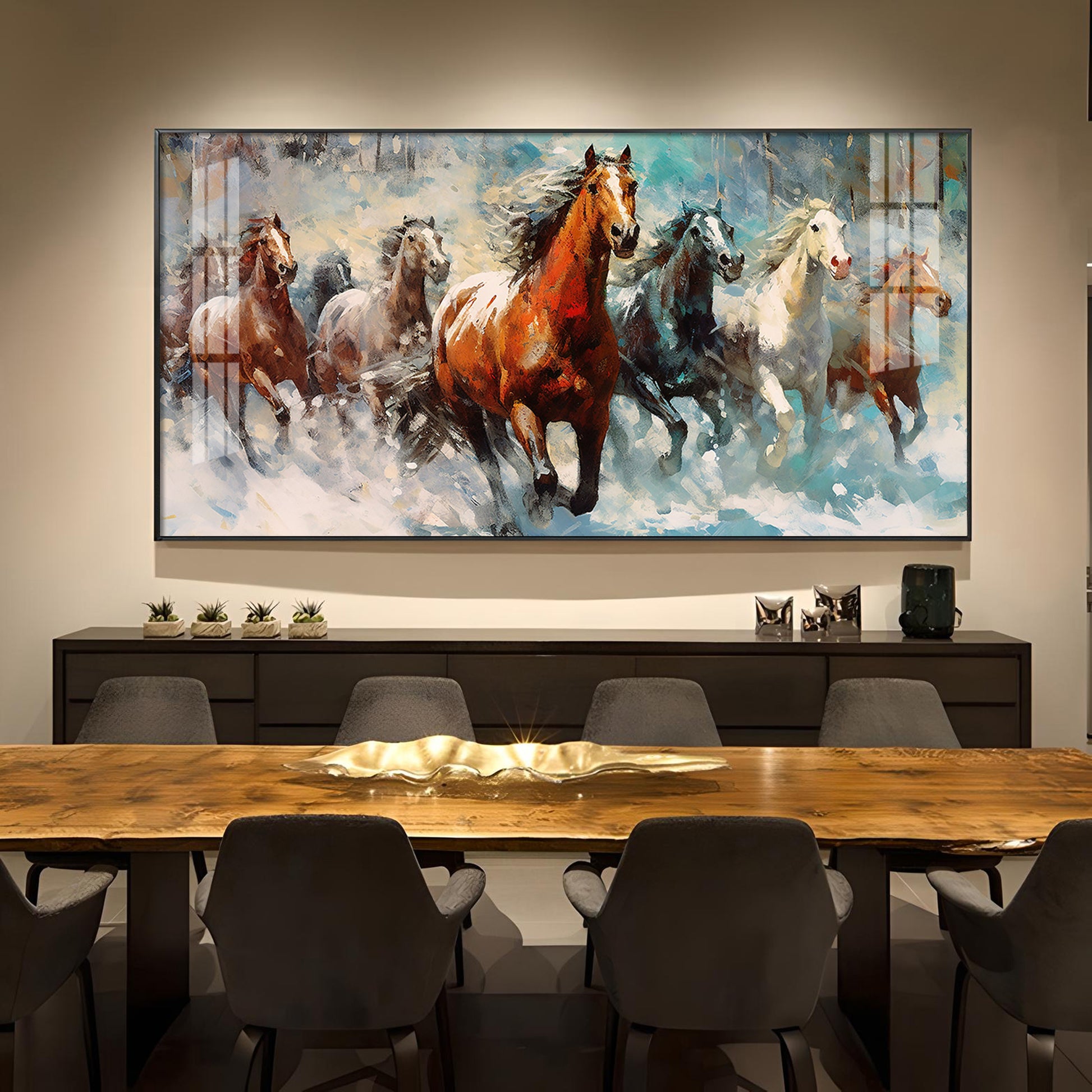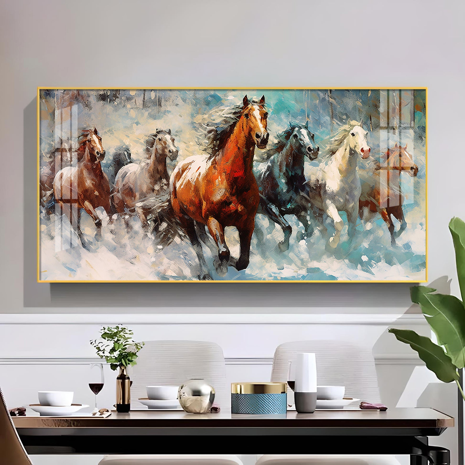 Running Horses Vastu Glass Finish Horizontal Wall Art