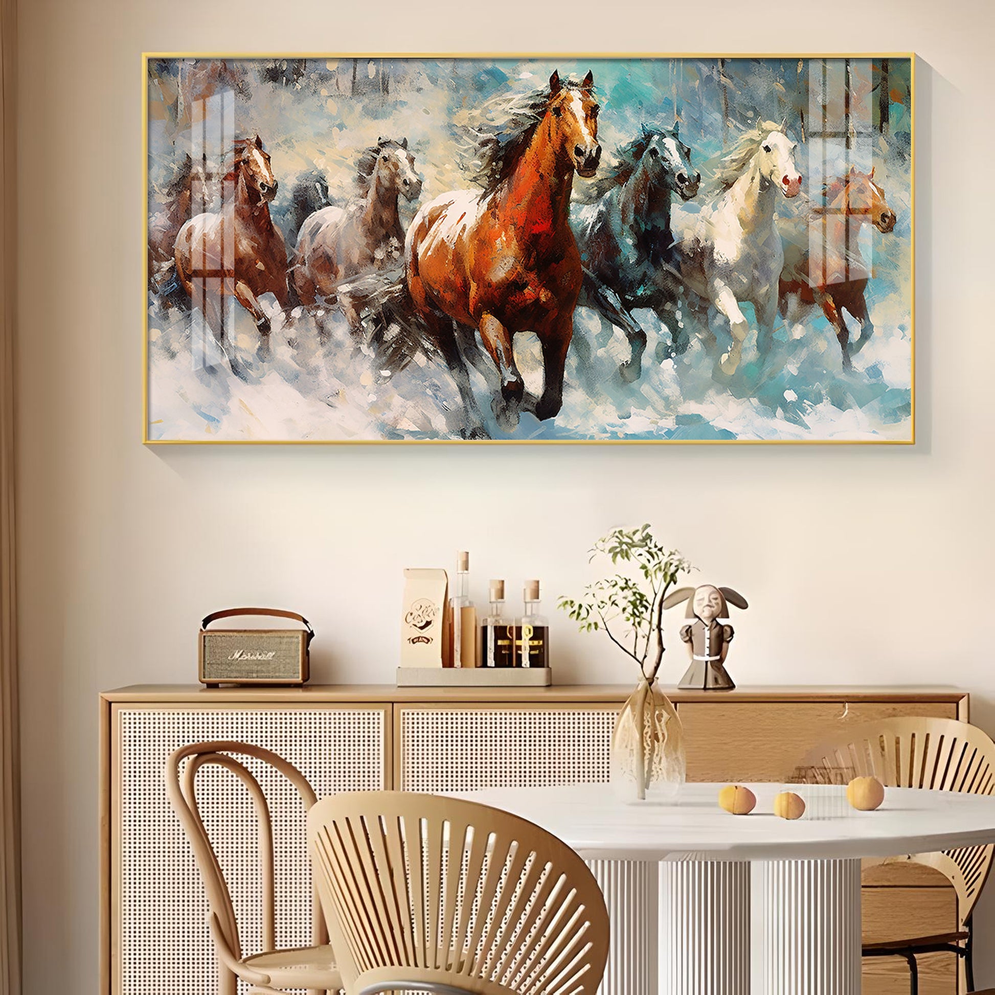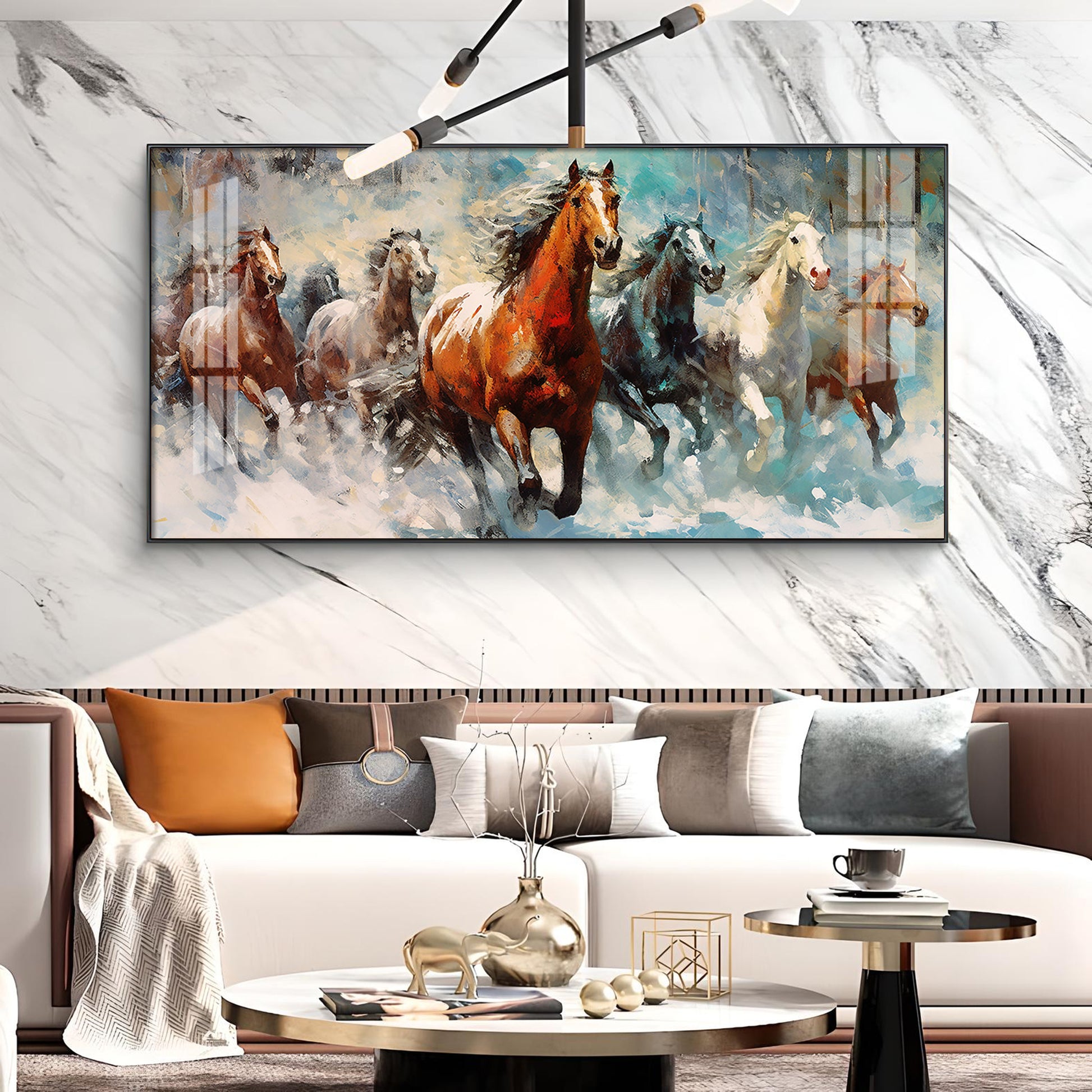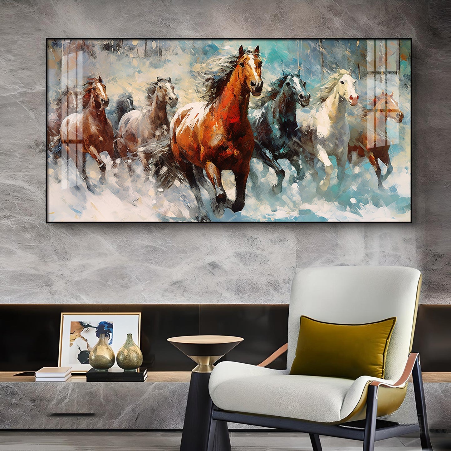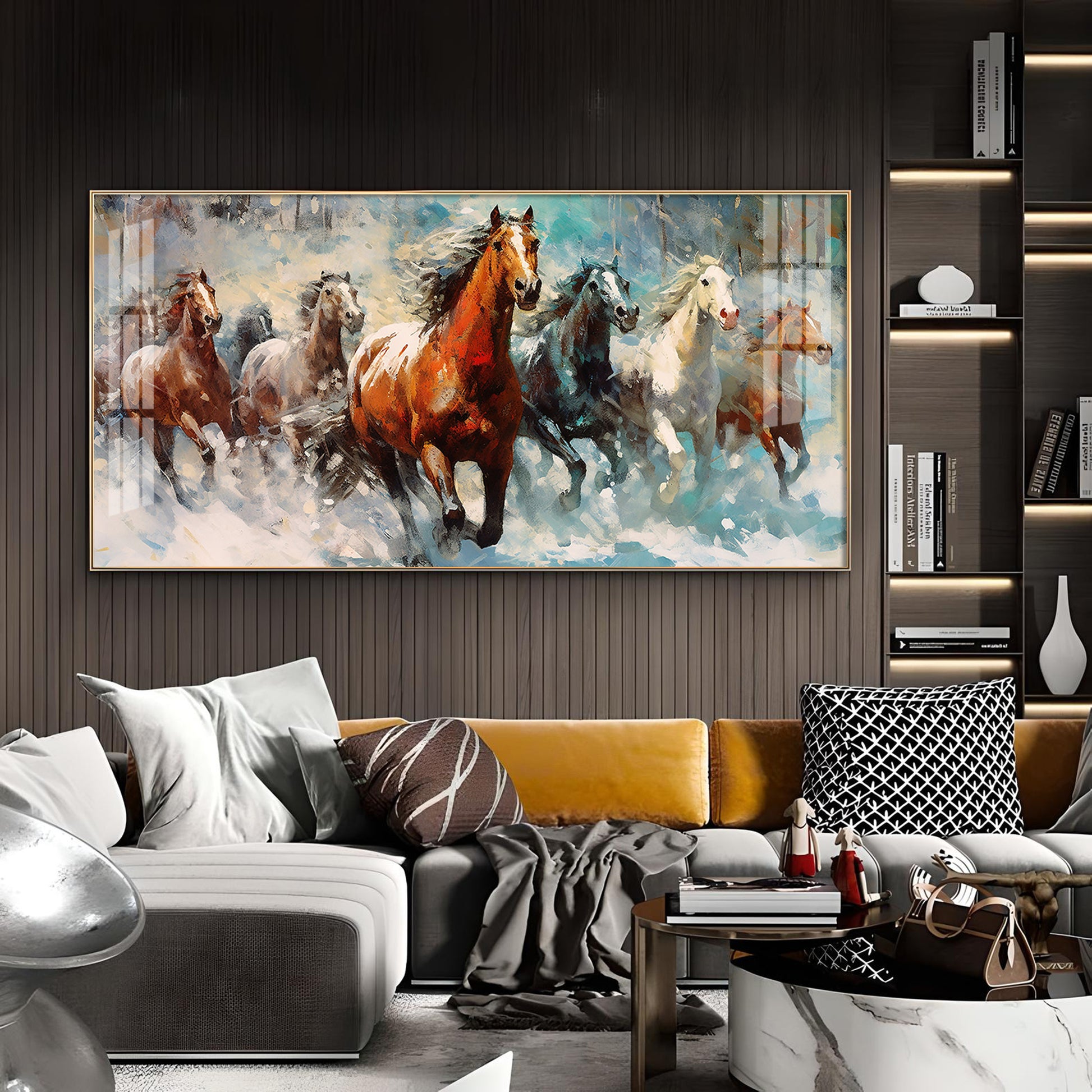 Running Horses Vastu Glass Finish Horizontal Wall Art