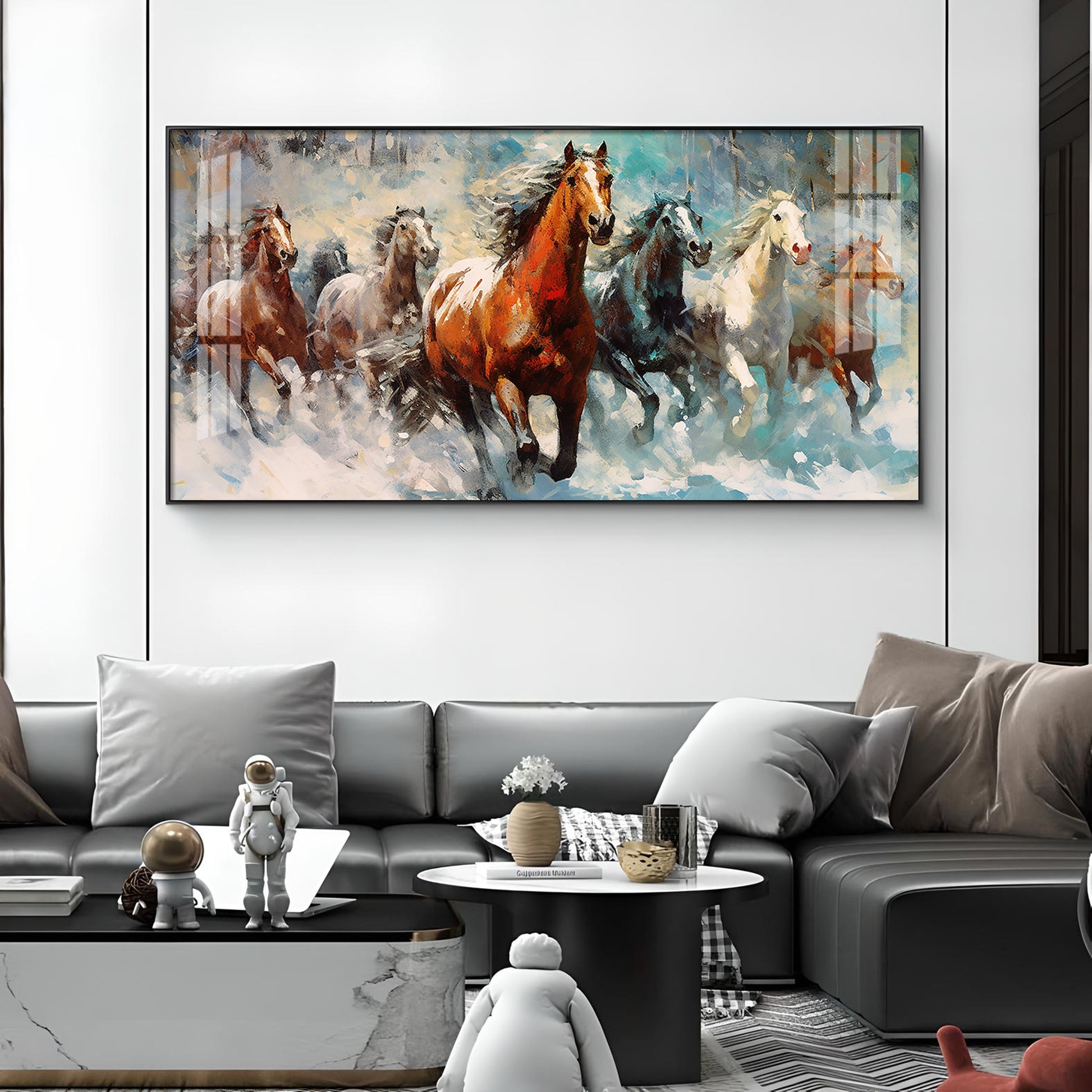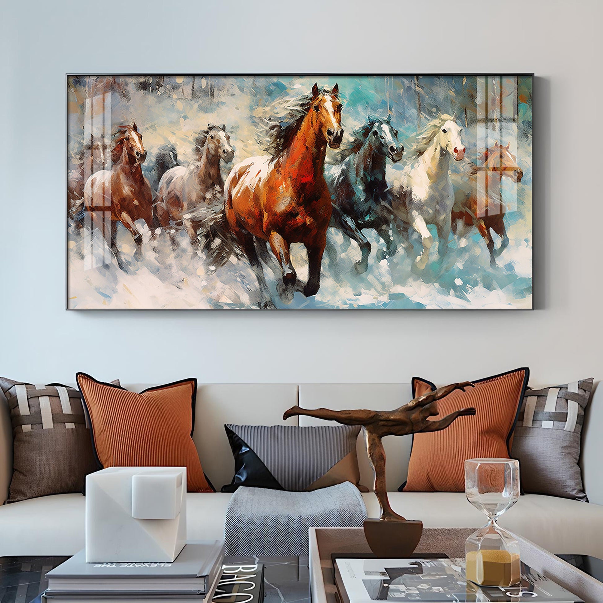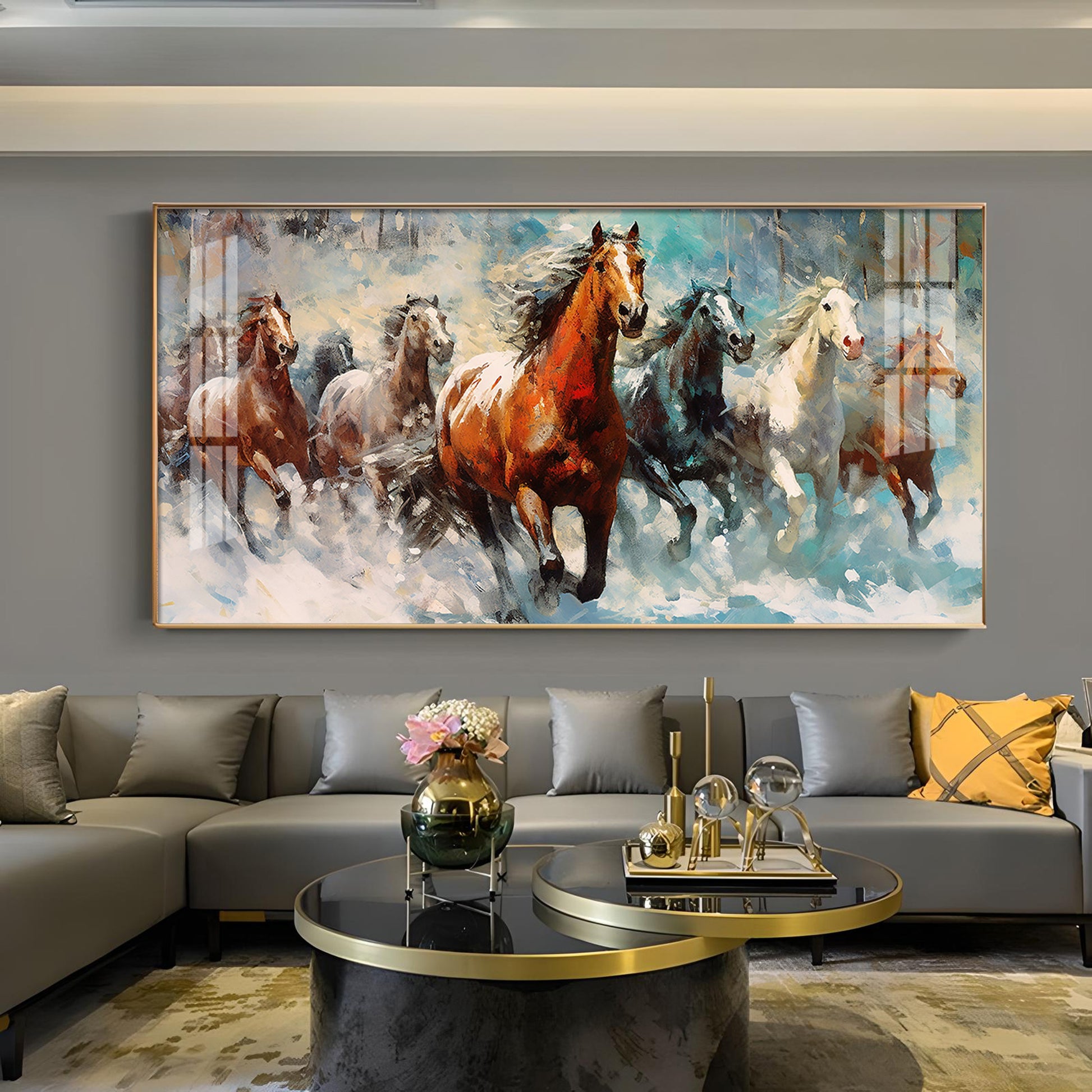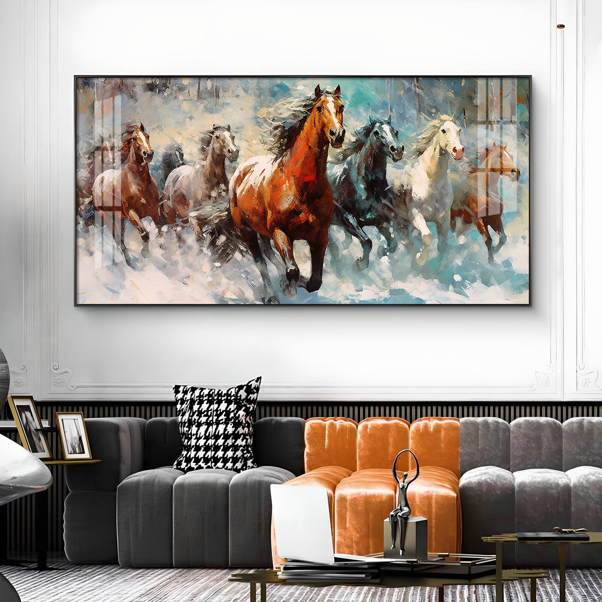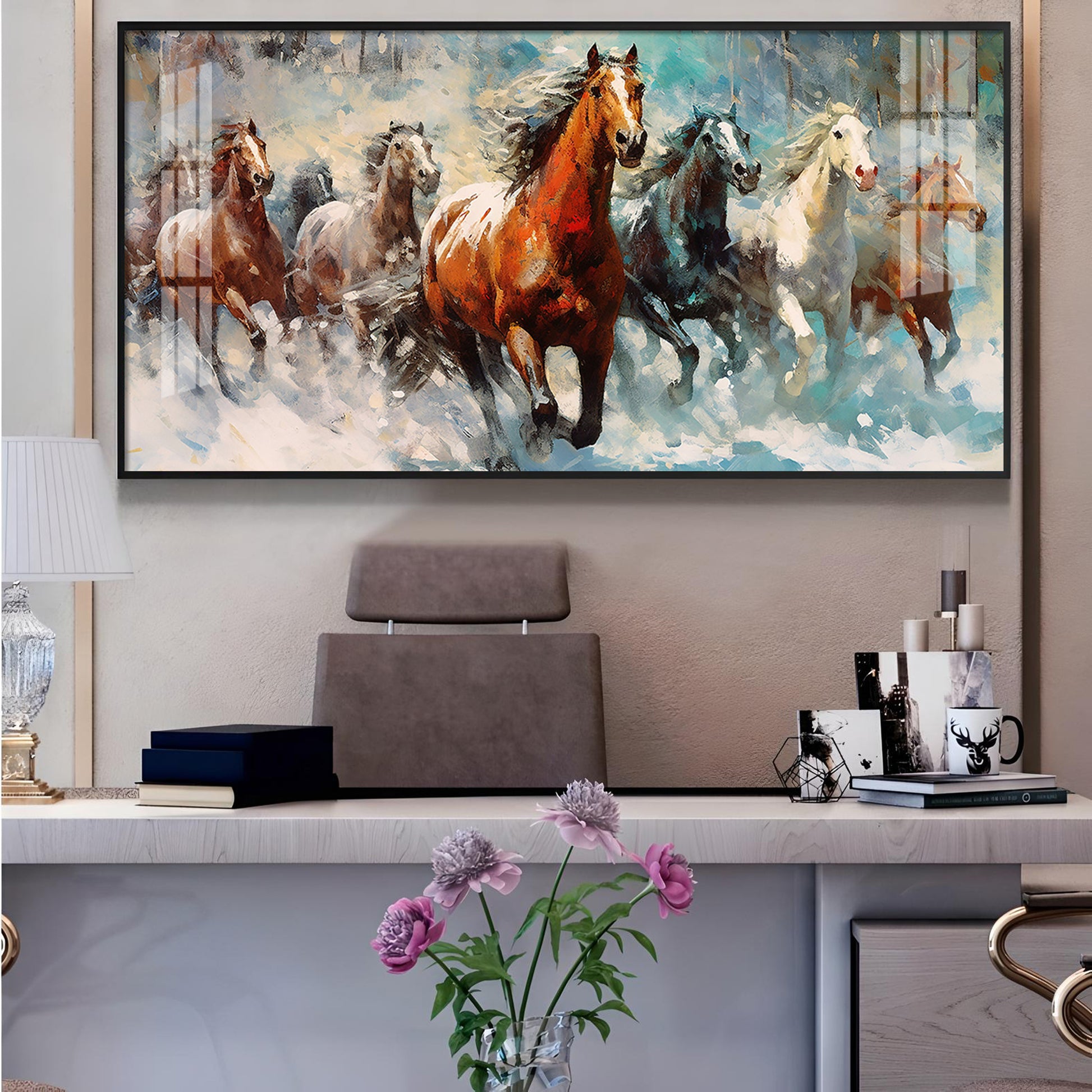 Running Horses Vastu Glass Finish Horizontal Wall Art