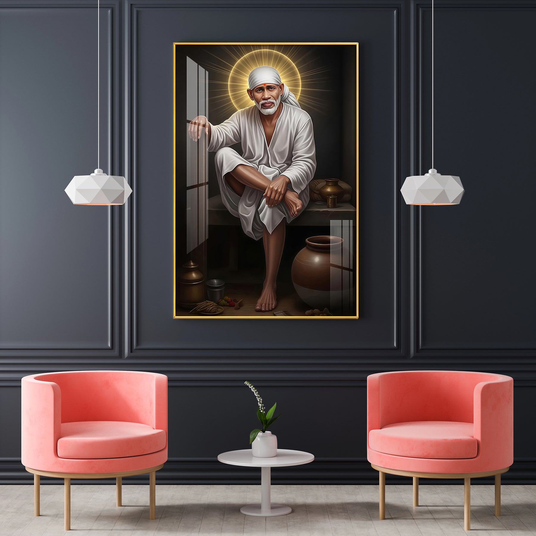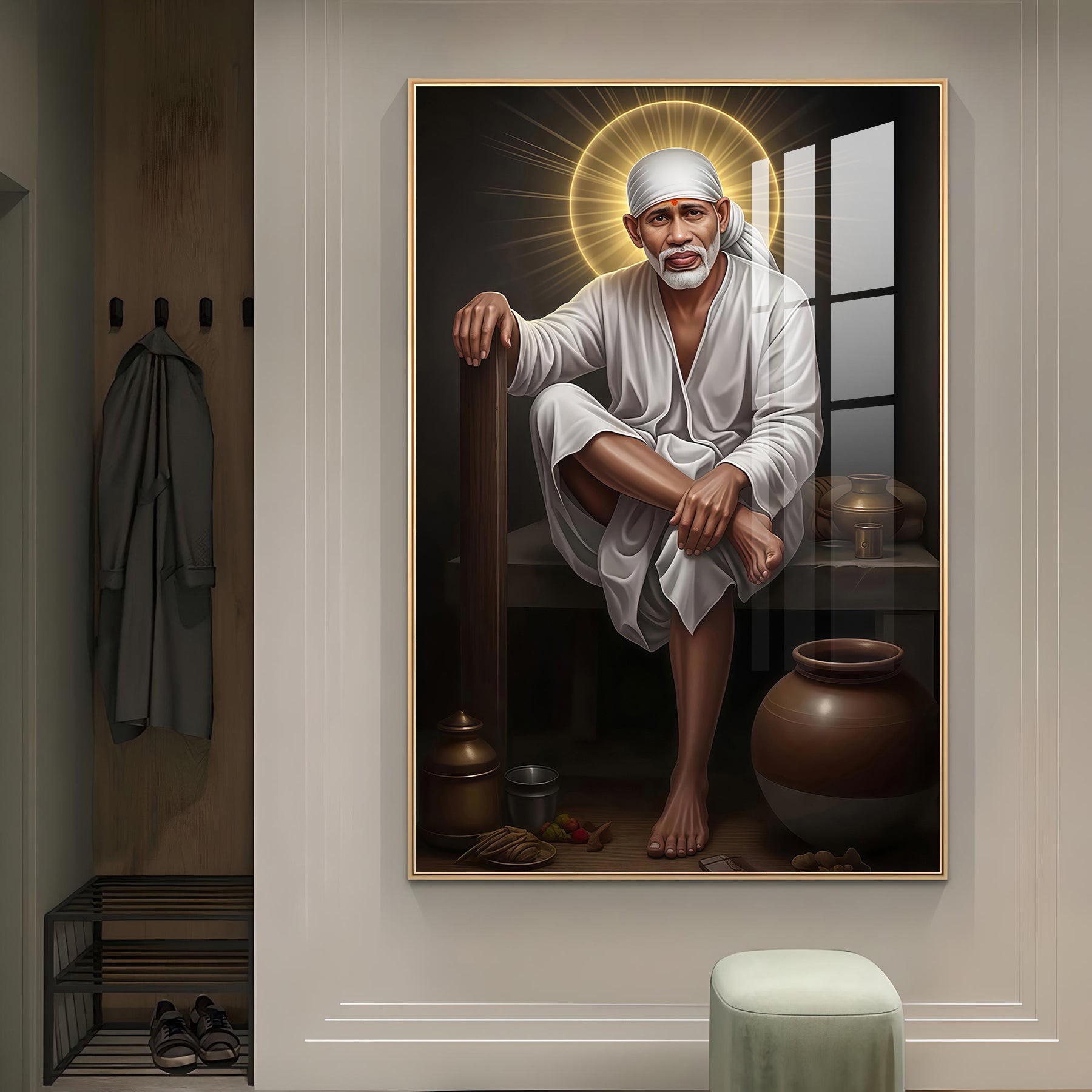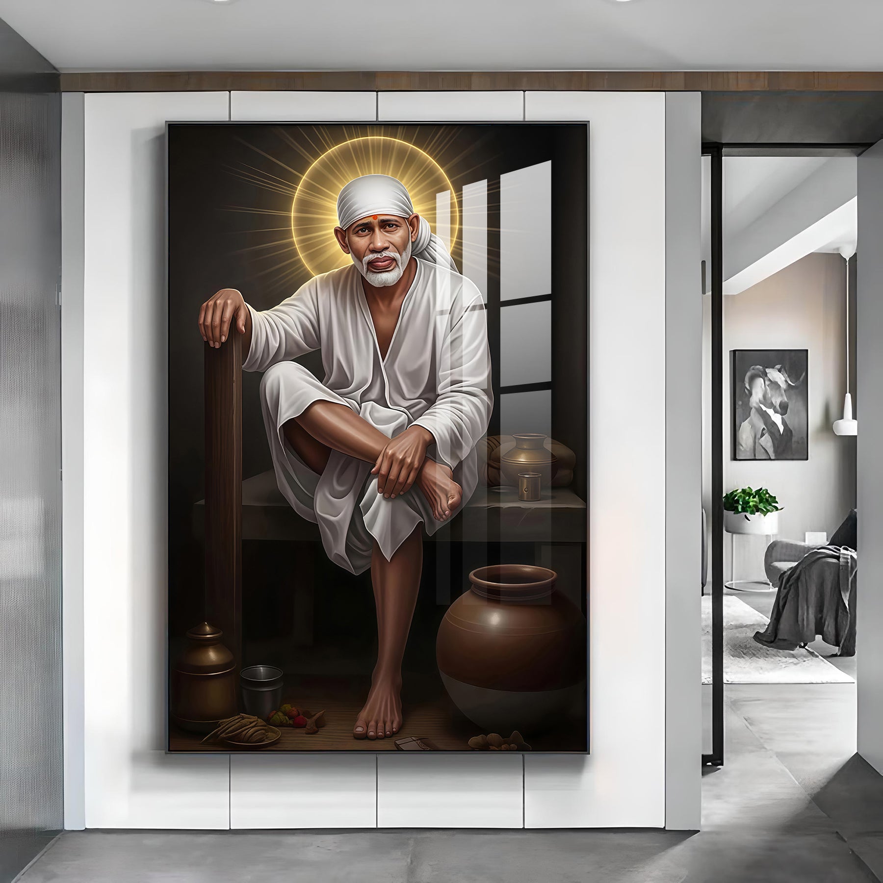 Sai Baba Glass Finish Vertical Wall Art