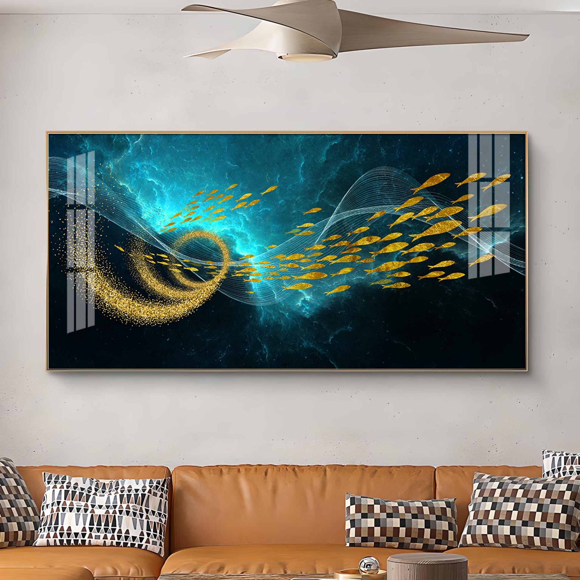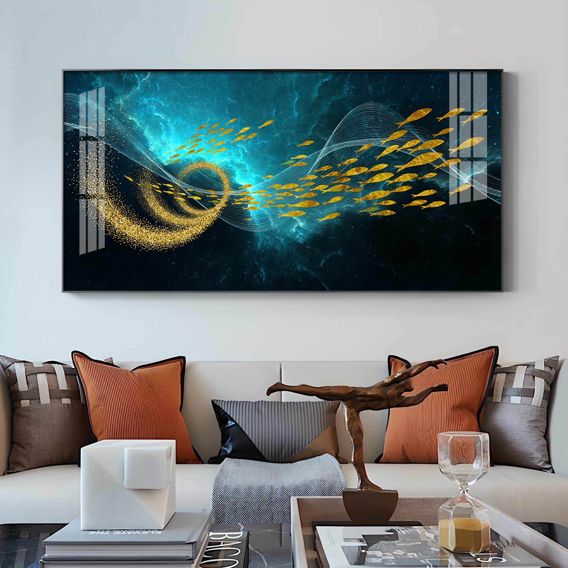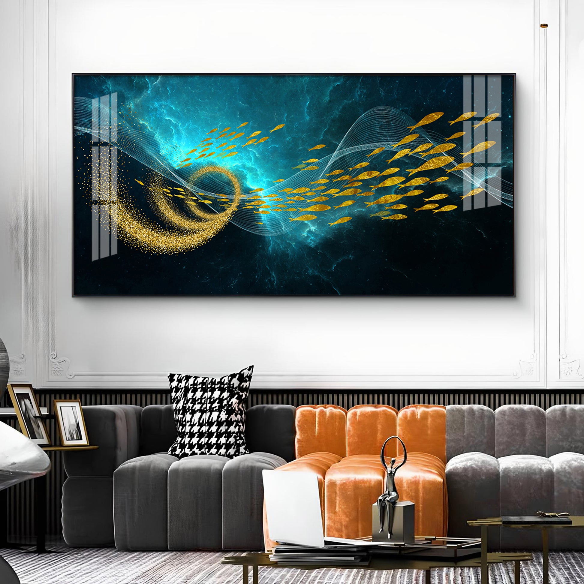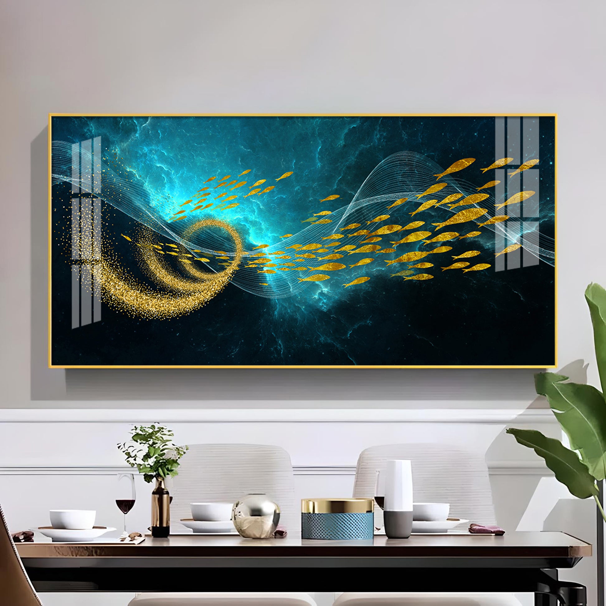 School Of Gold Fish Glass Finish Horizontal Wall Art