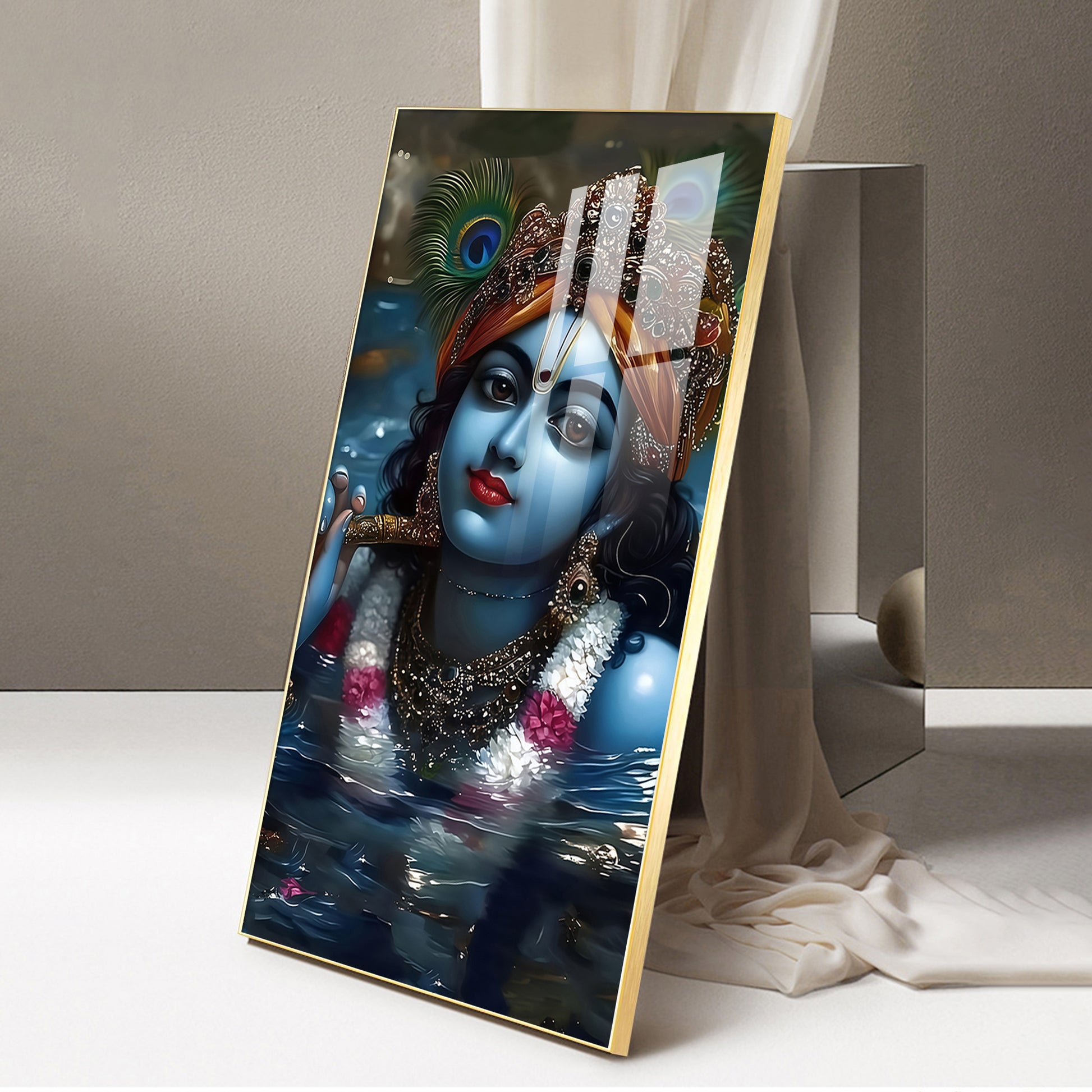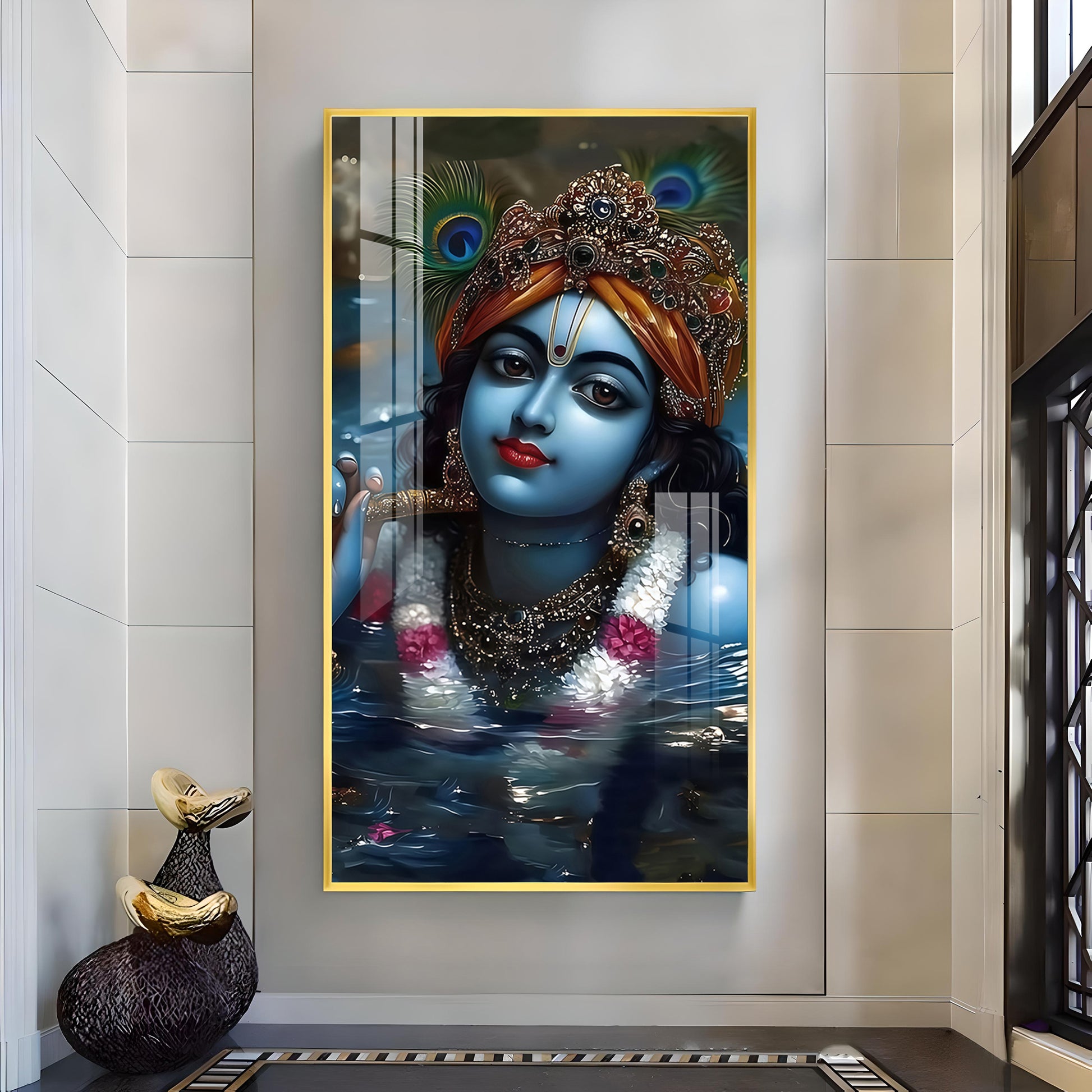 Shri Banke Bihari Glass Finish Vertical Wall Art