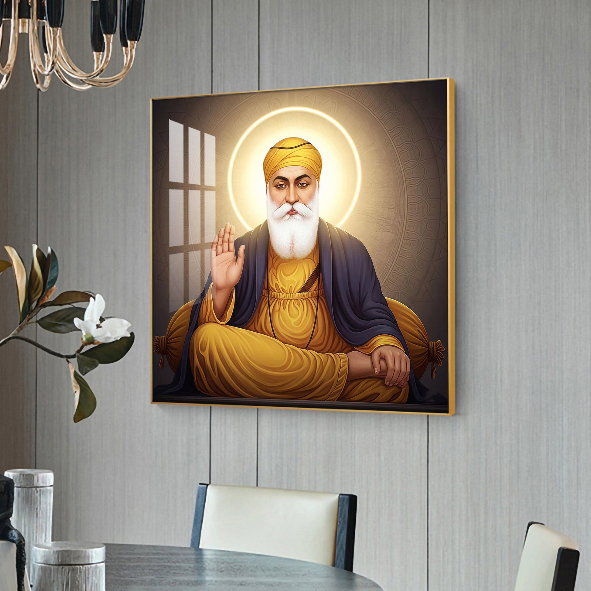 Shri Guru Nanak Dev Ji Glass Finish Square Wall Art