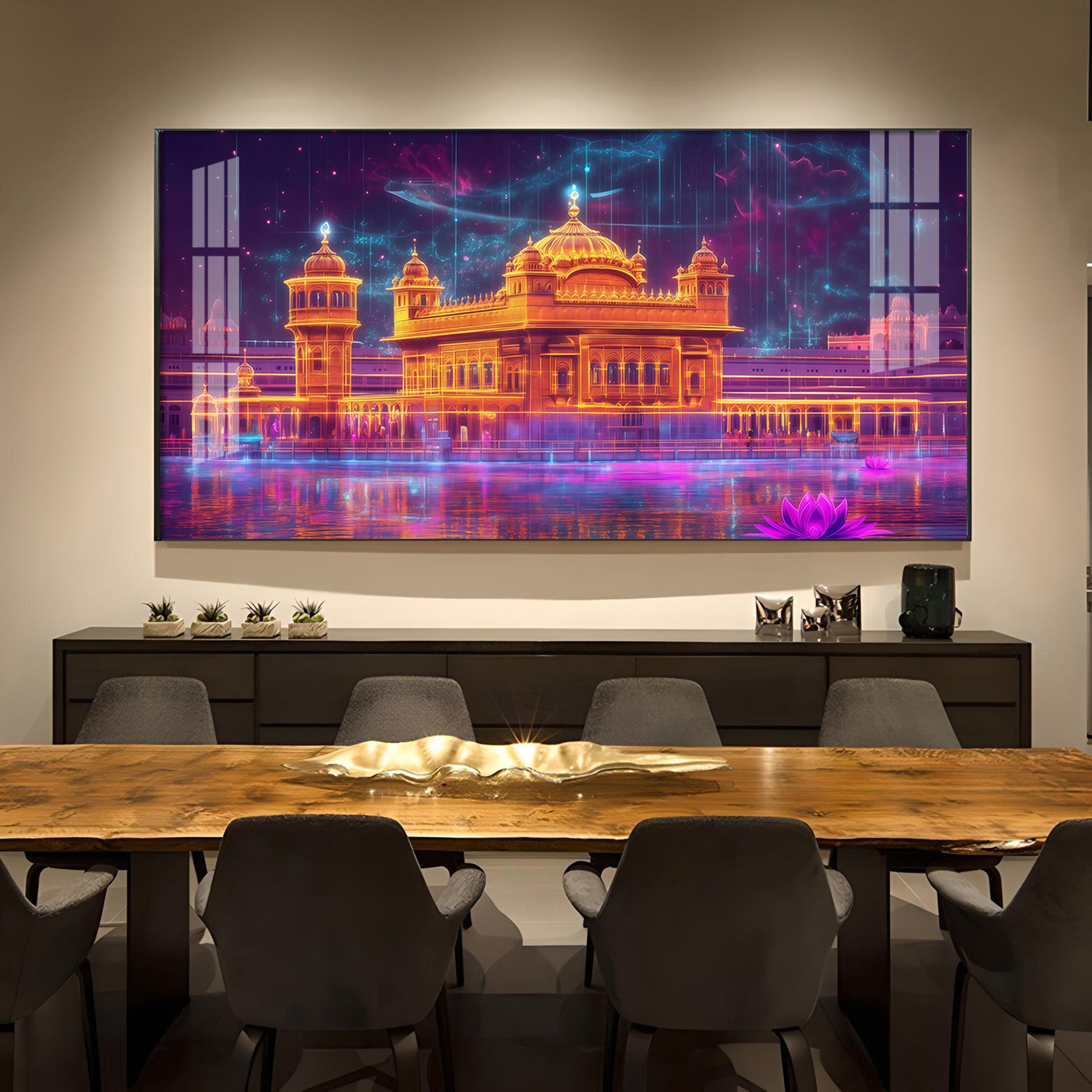 Sri Harmandir Sahib Glass Finish Horizontal Wall Art