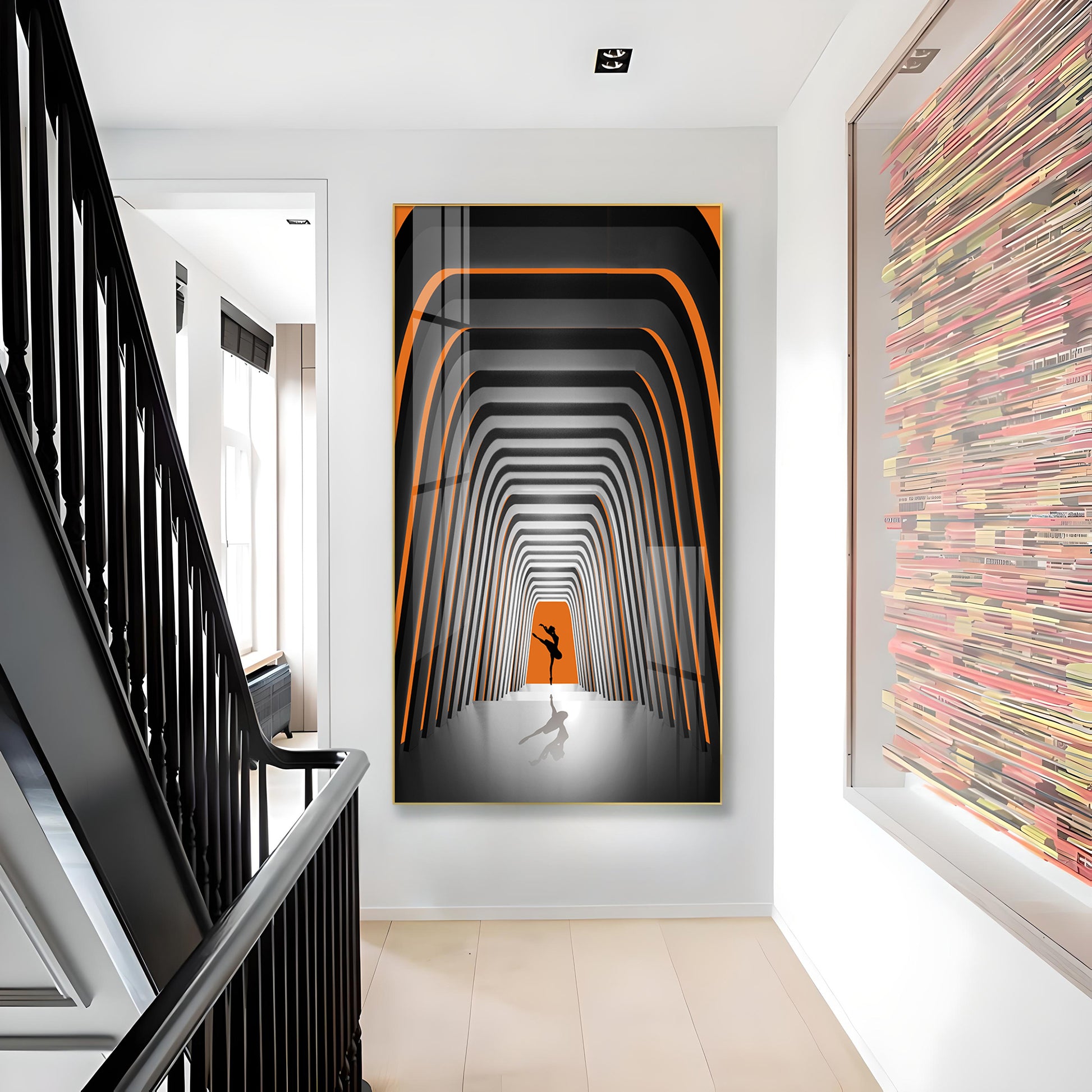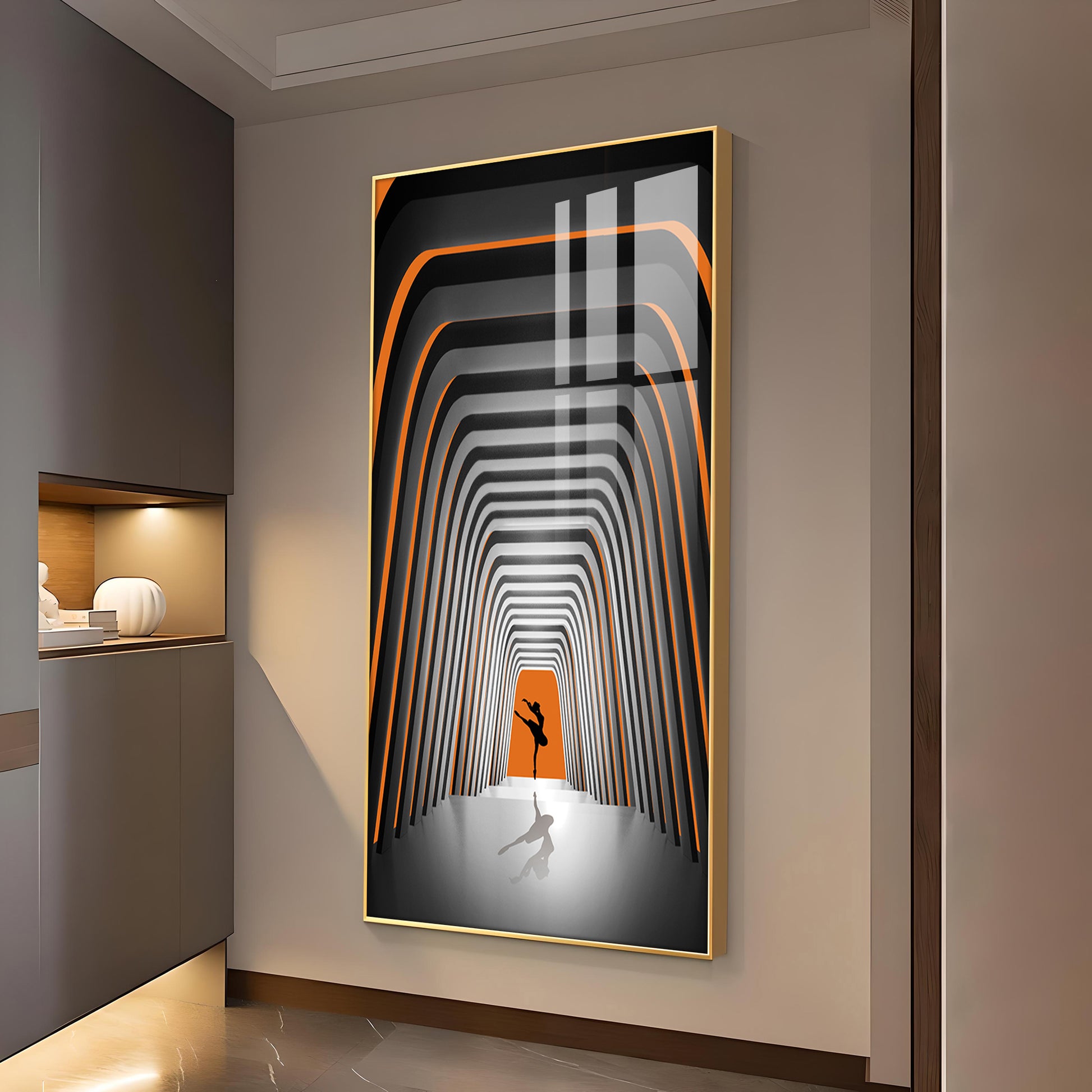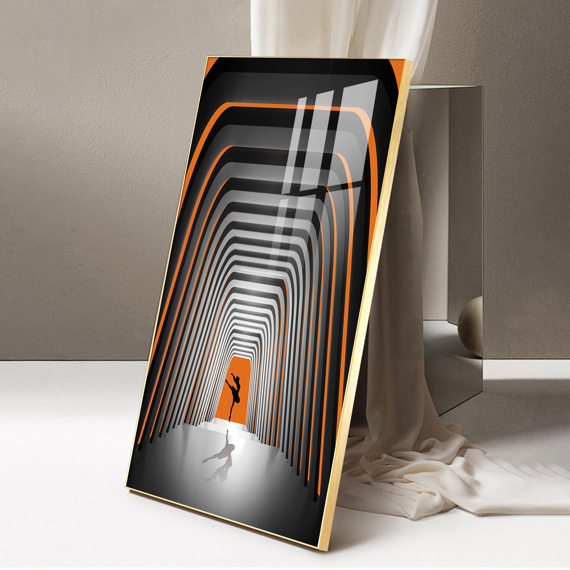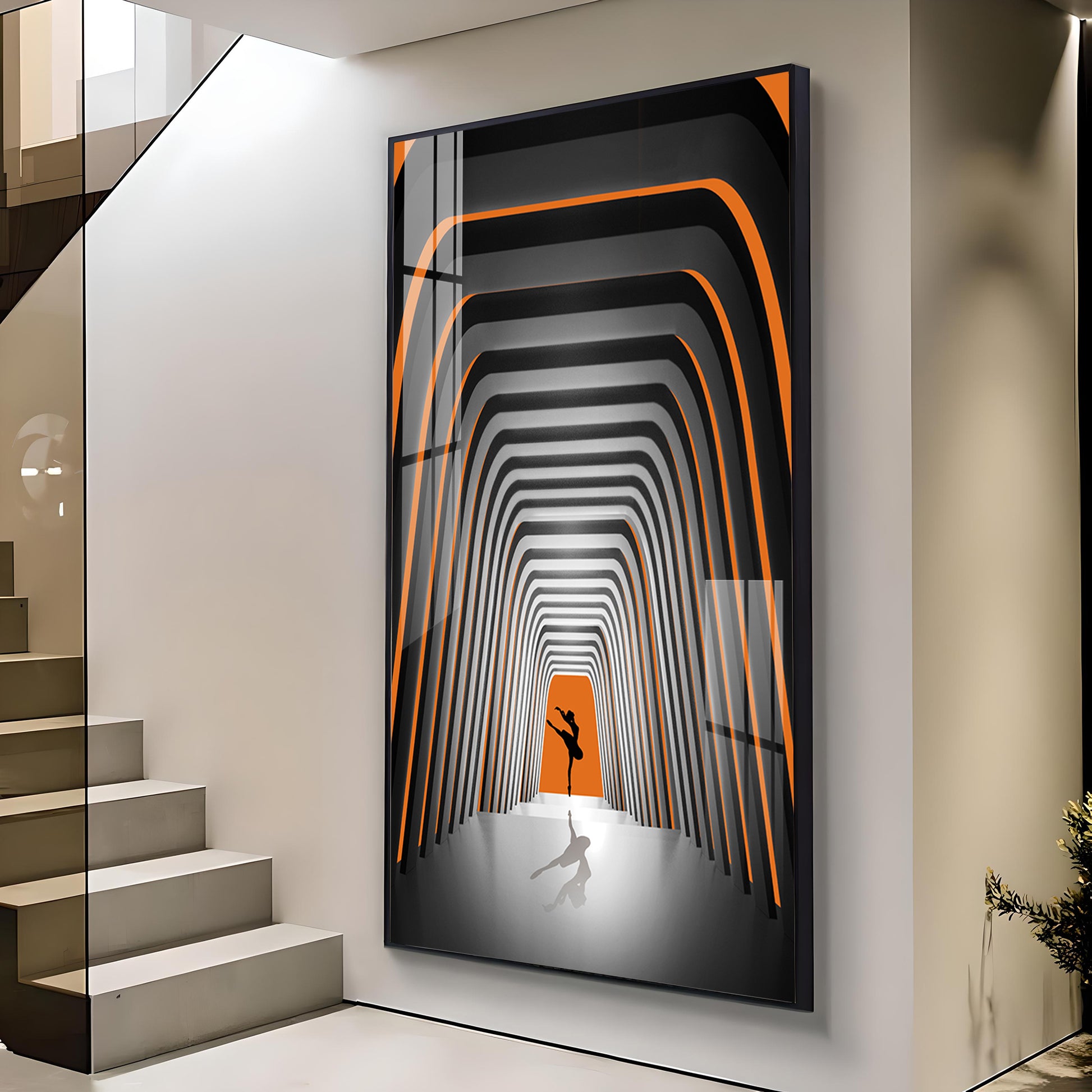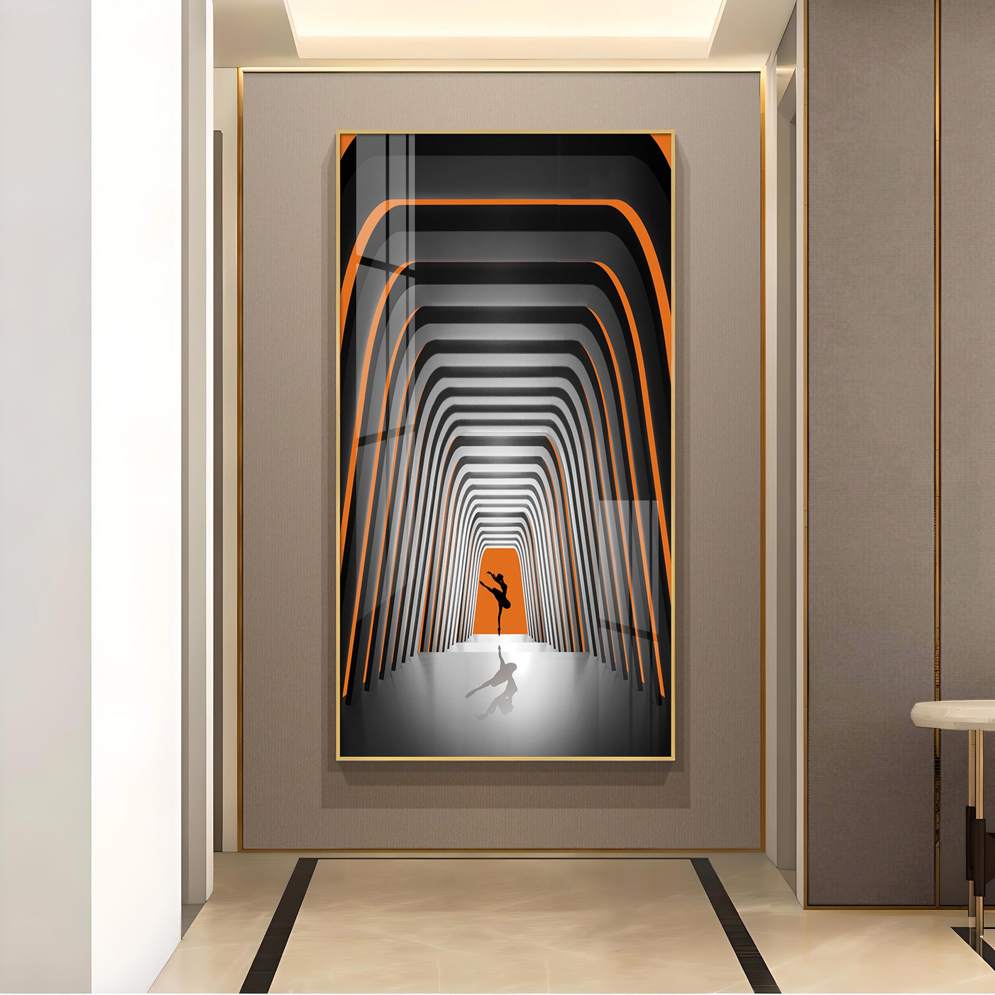 Striped Illusion Of Dancing Girl Glass Finish Vertical Wall Art