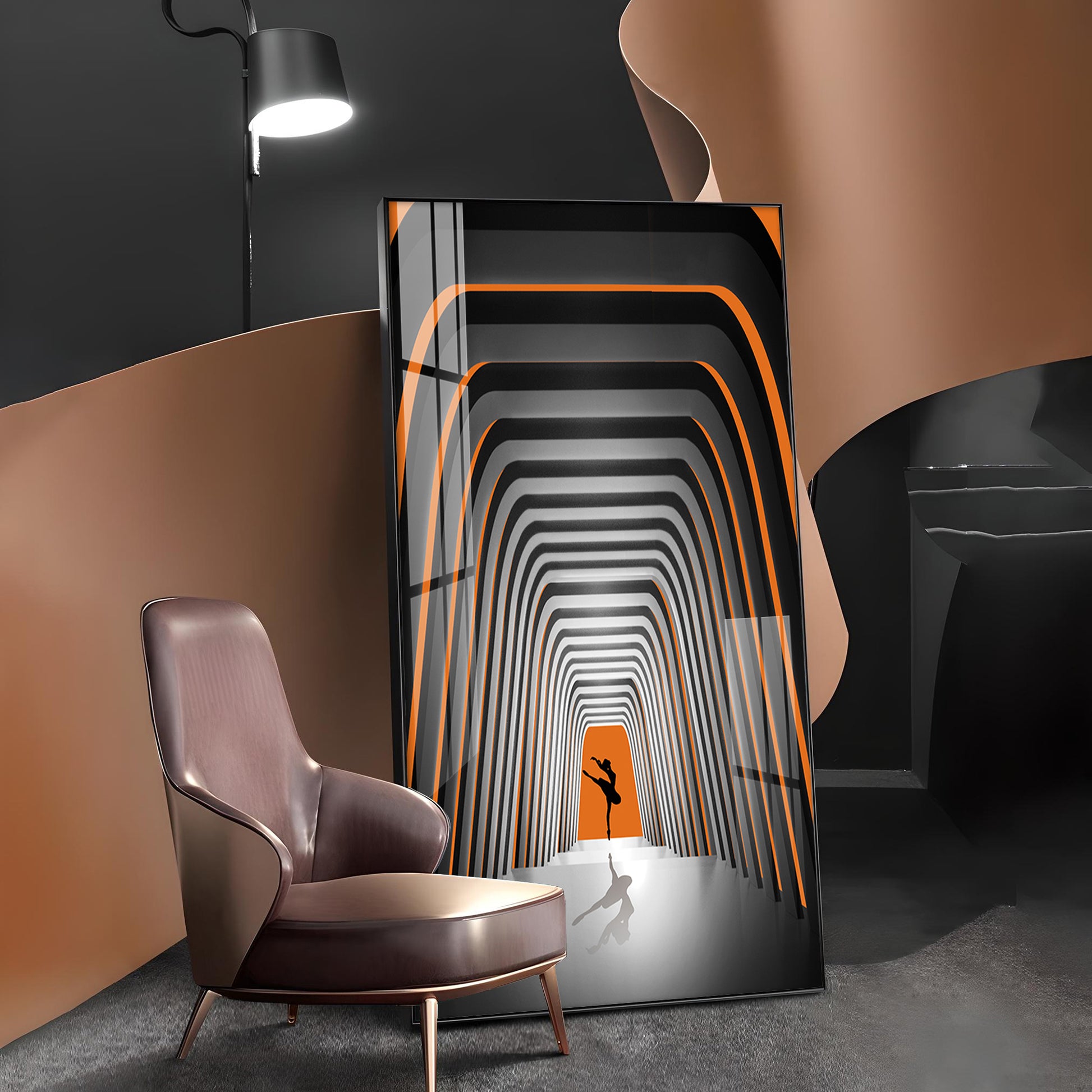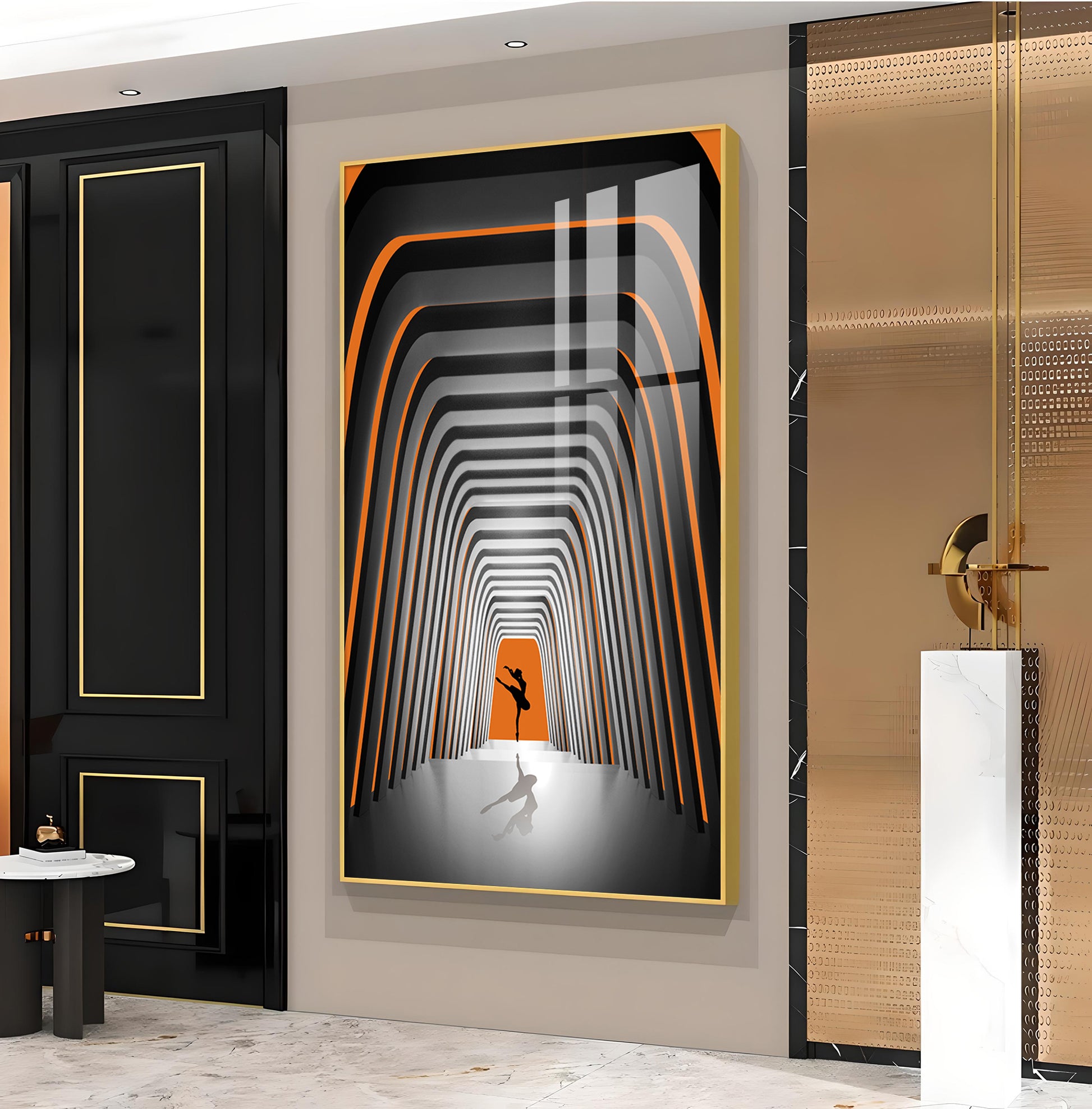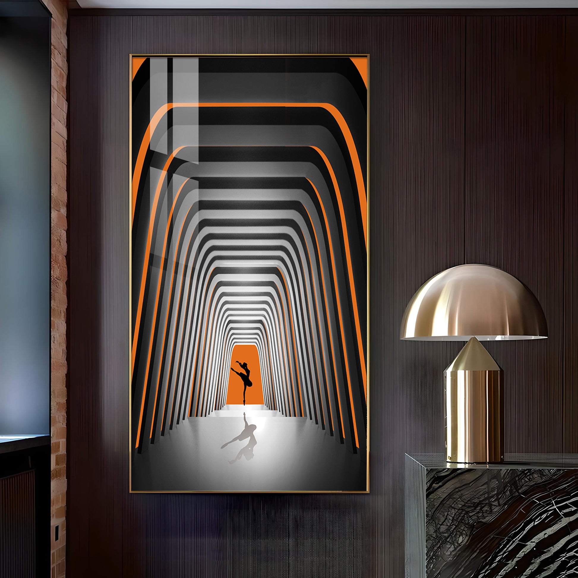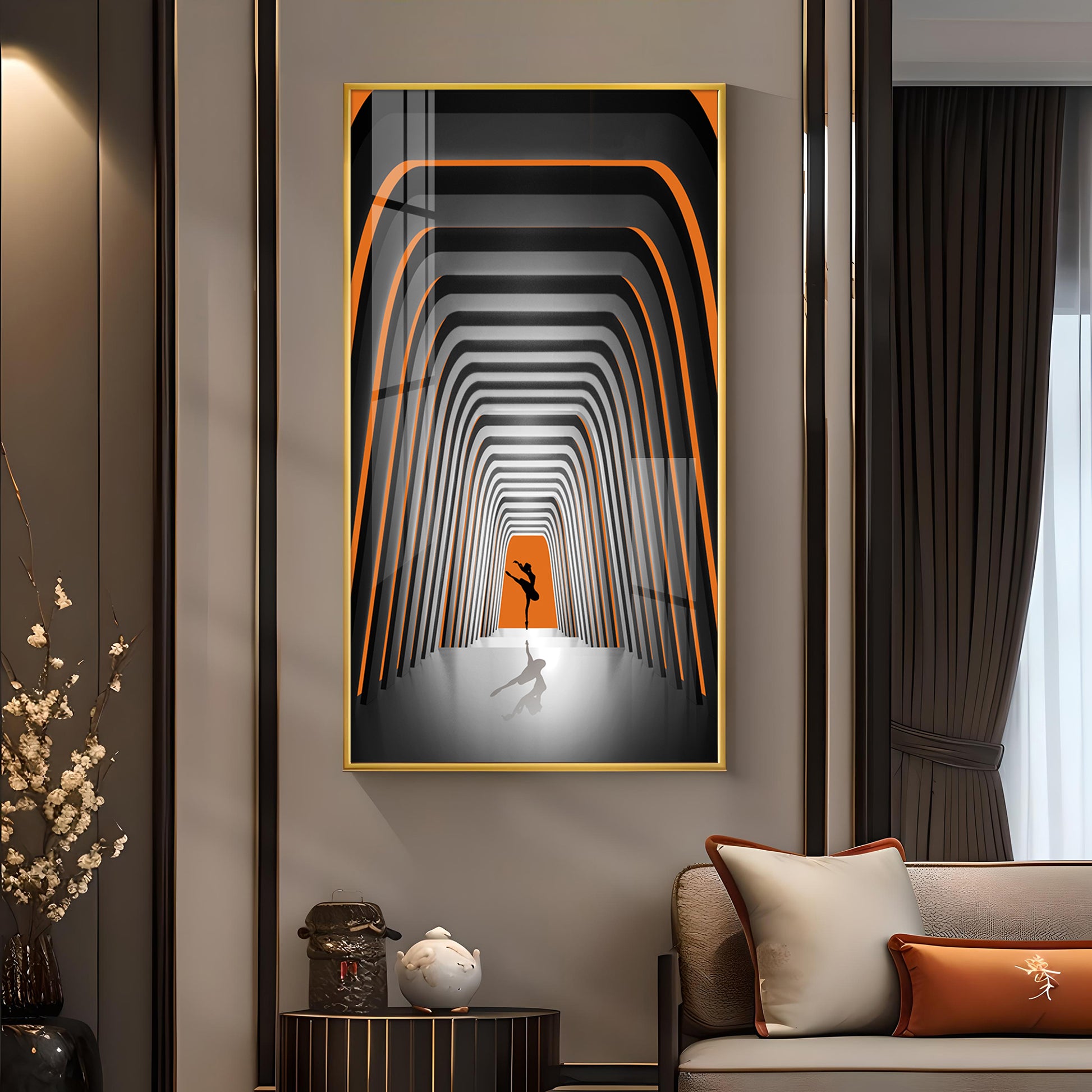 Striped Illusion Of Dancing Girl Glass Finish Vertical Wall Art
