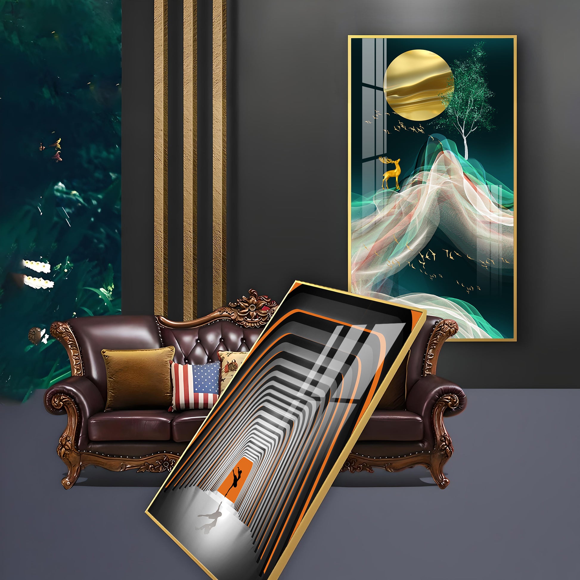 Our Framed glass finish wall art is easy to hang. The metal hooks are included in the box of your ordered wall art. You can simply mount it to the wall you want to place.