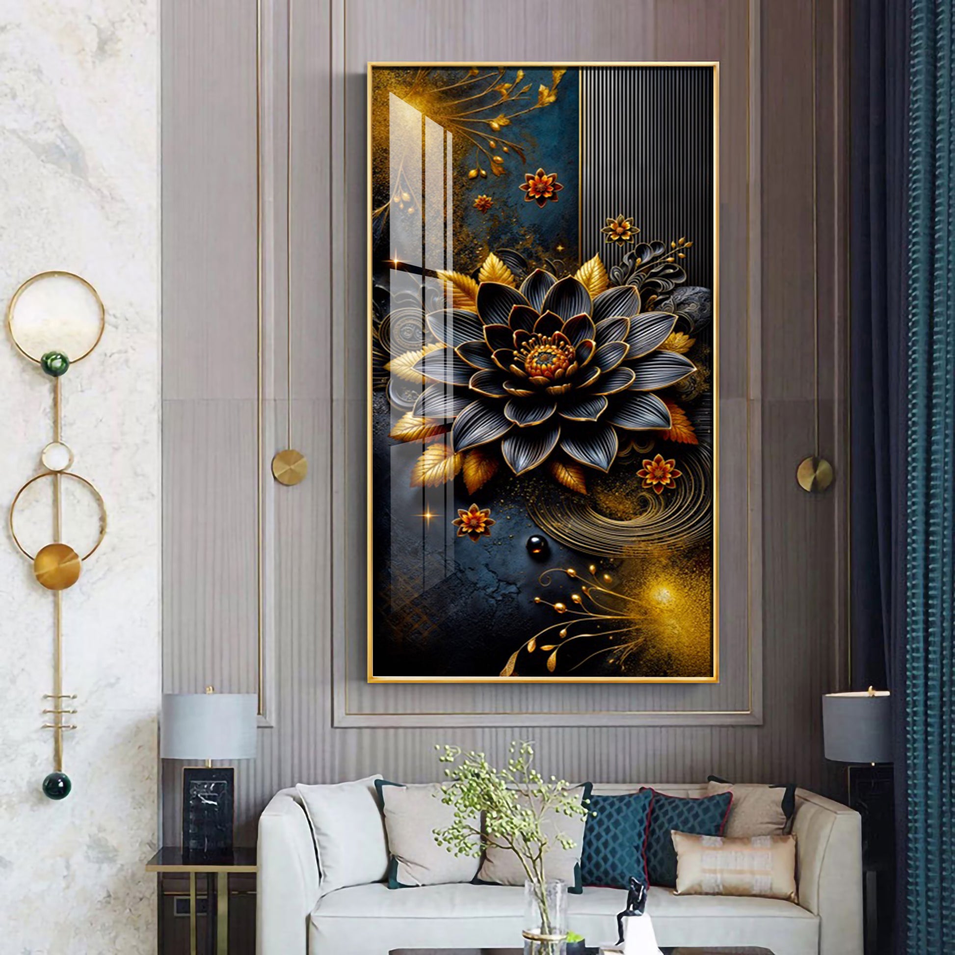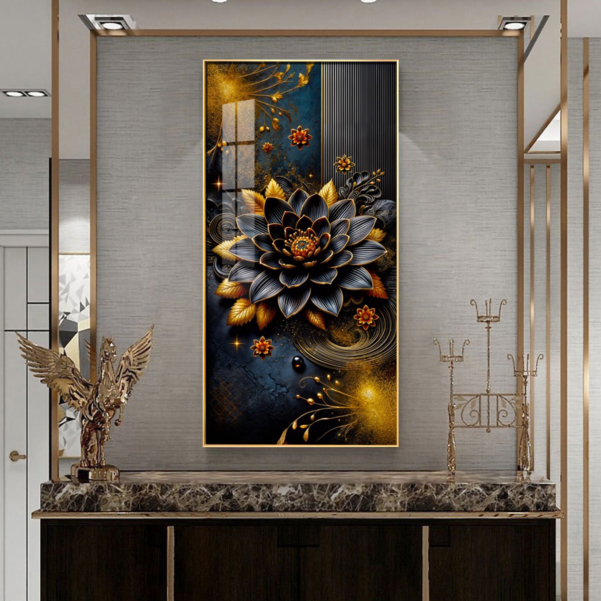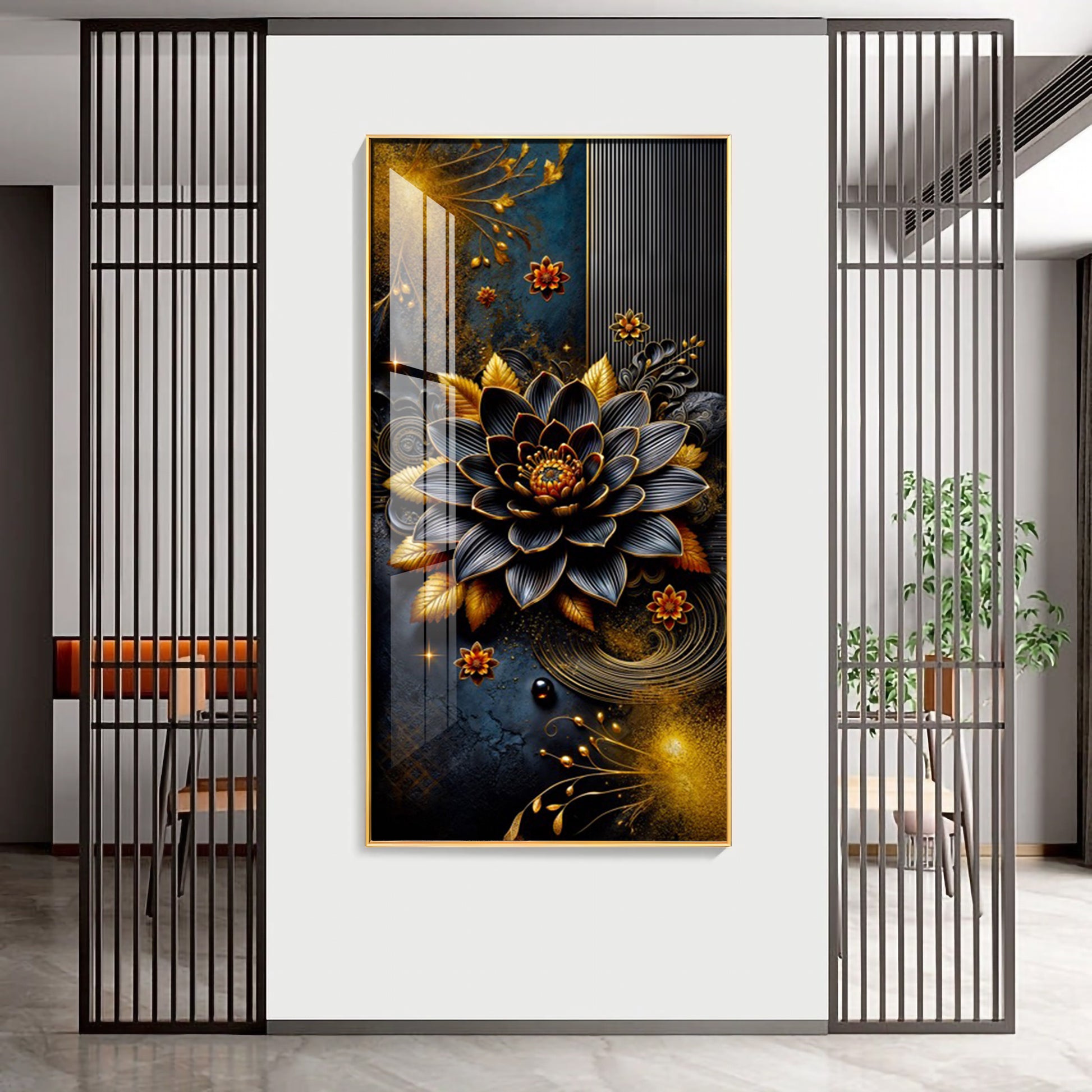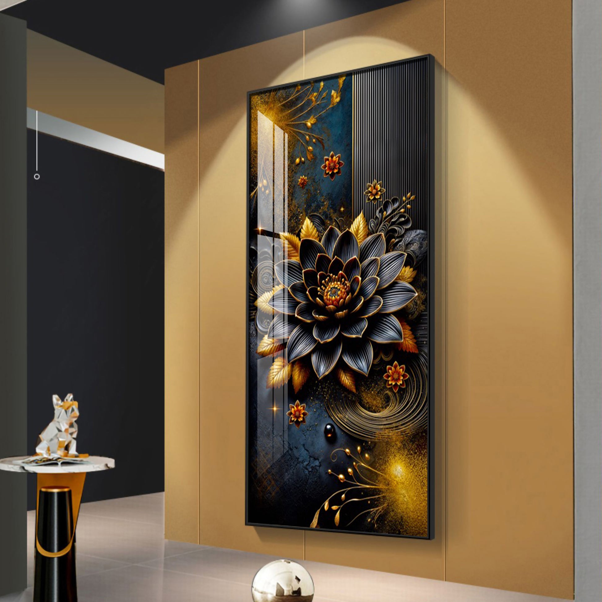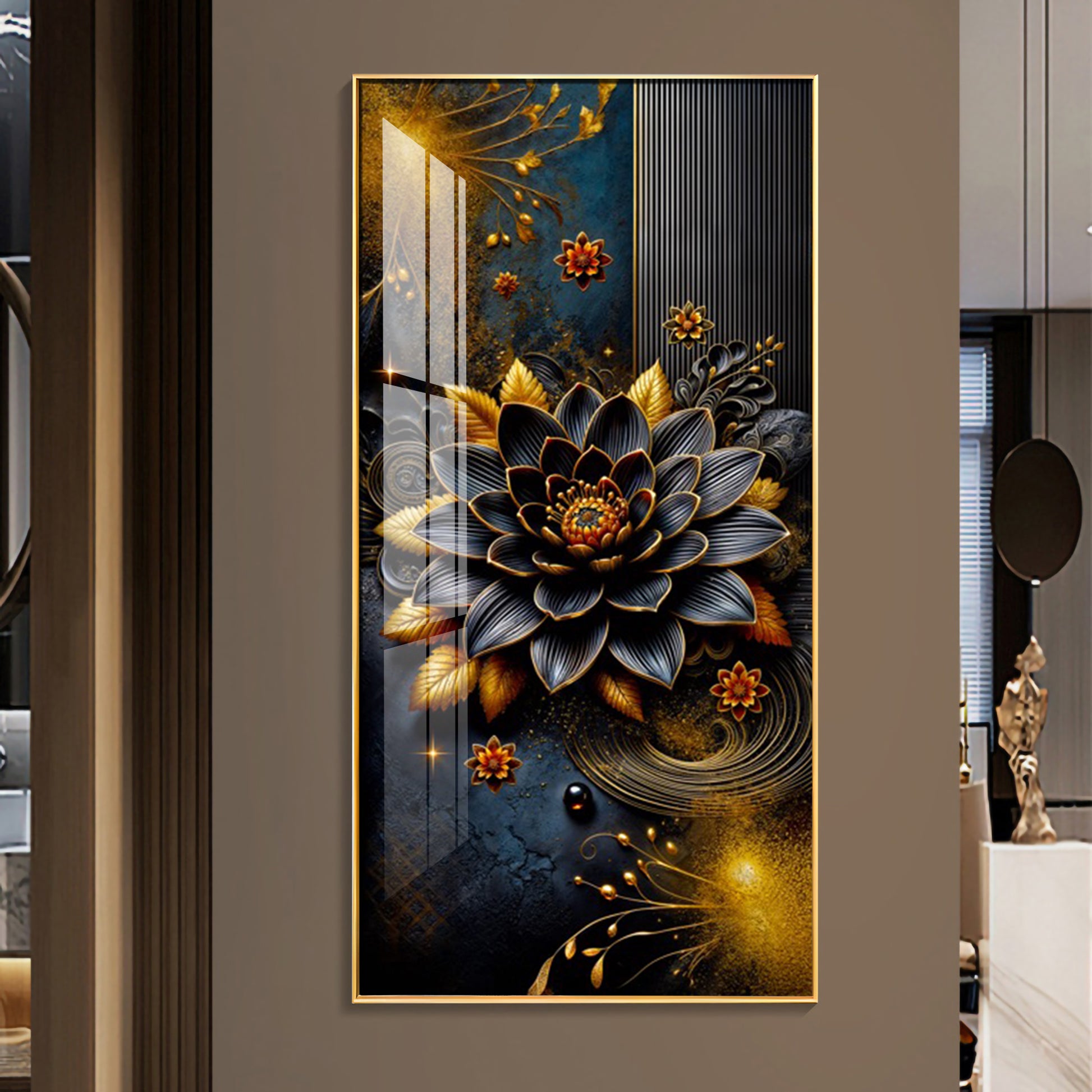 Surreal Black Flower Glass Finish Vertical Wall Art