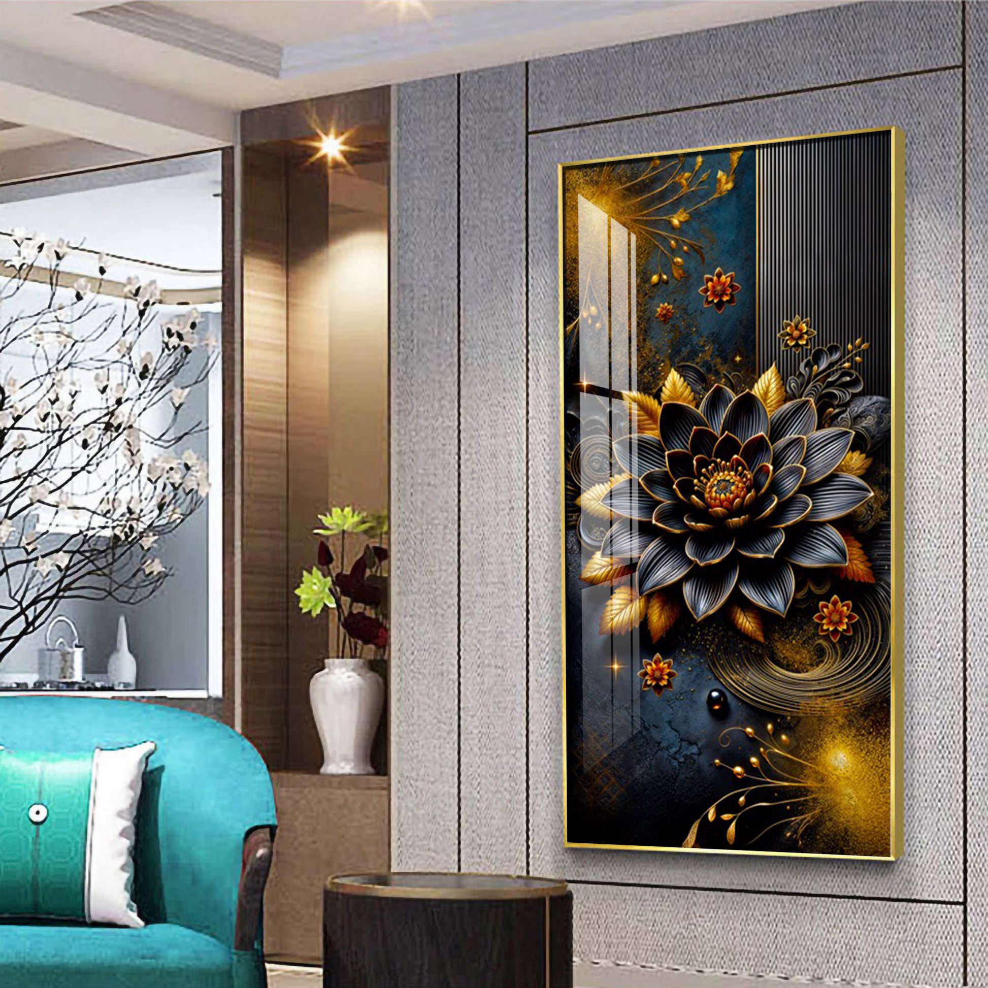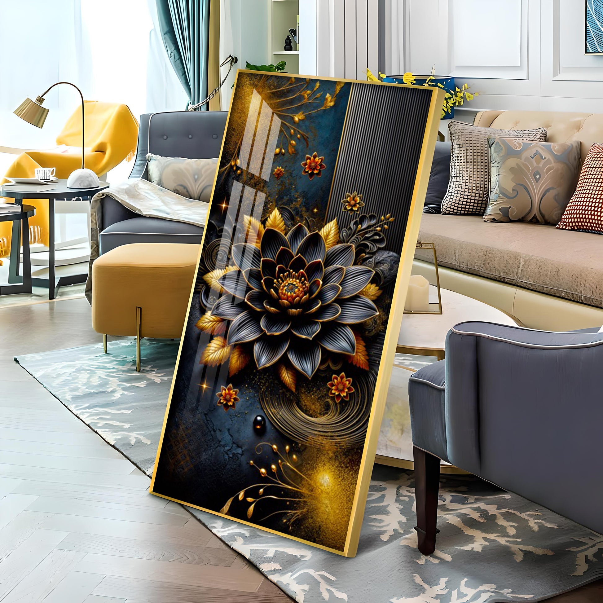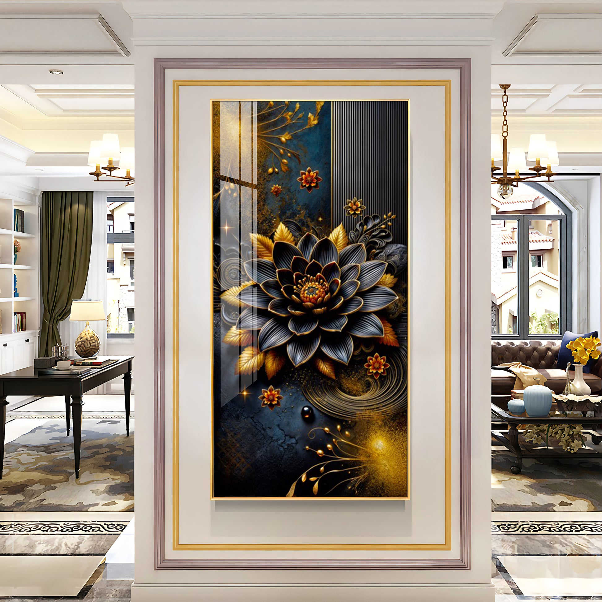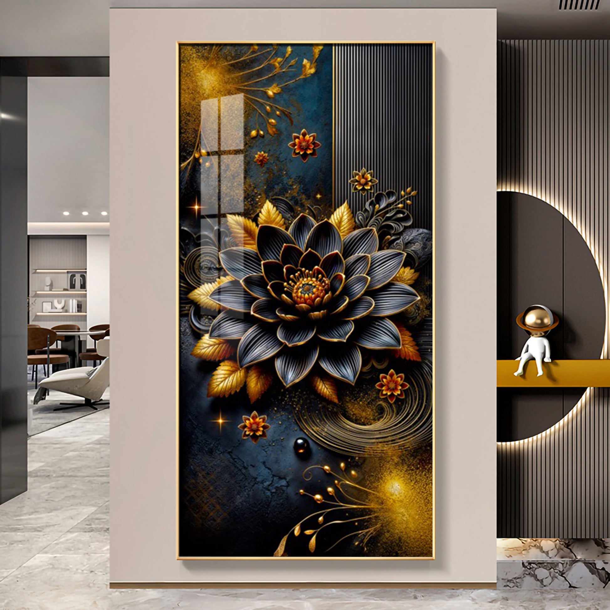 Surreal Black Flower Glass Finish Vertical Wall Art