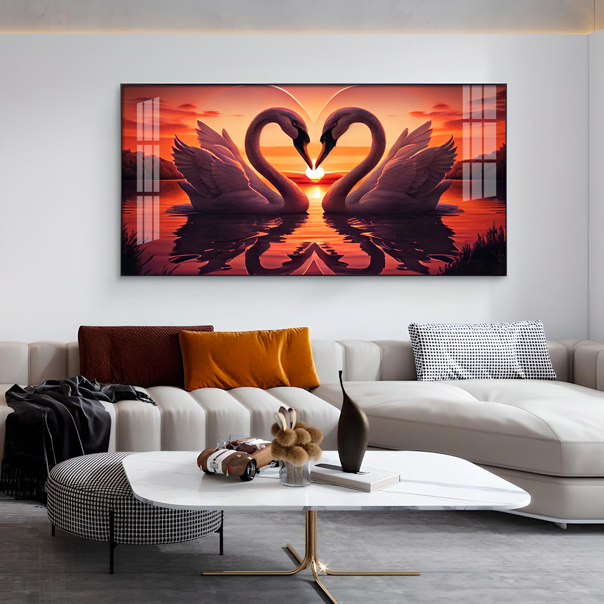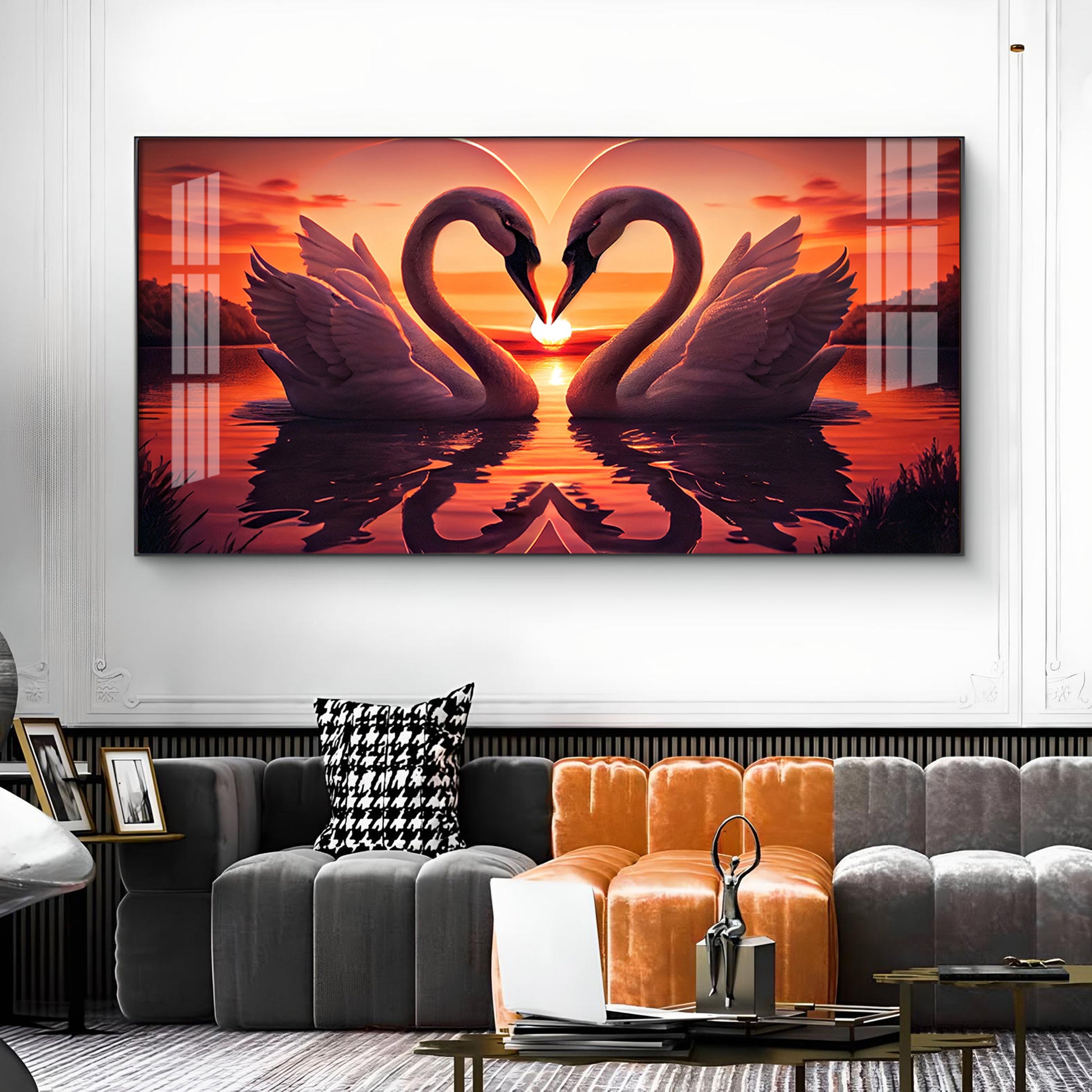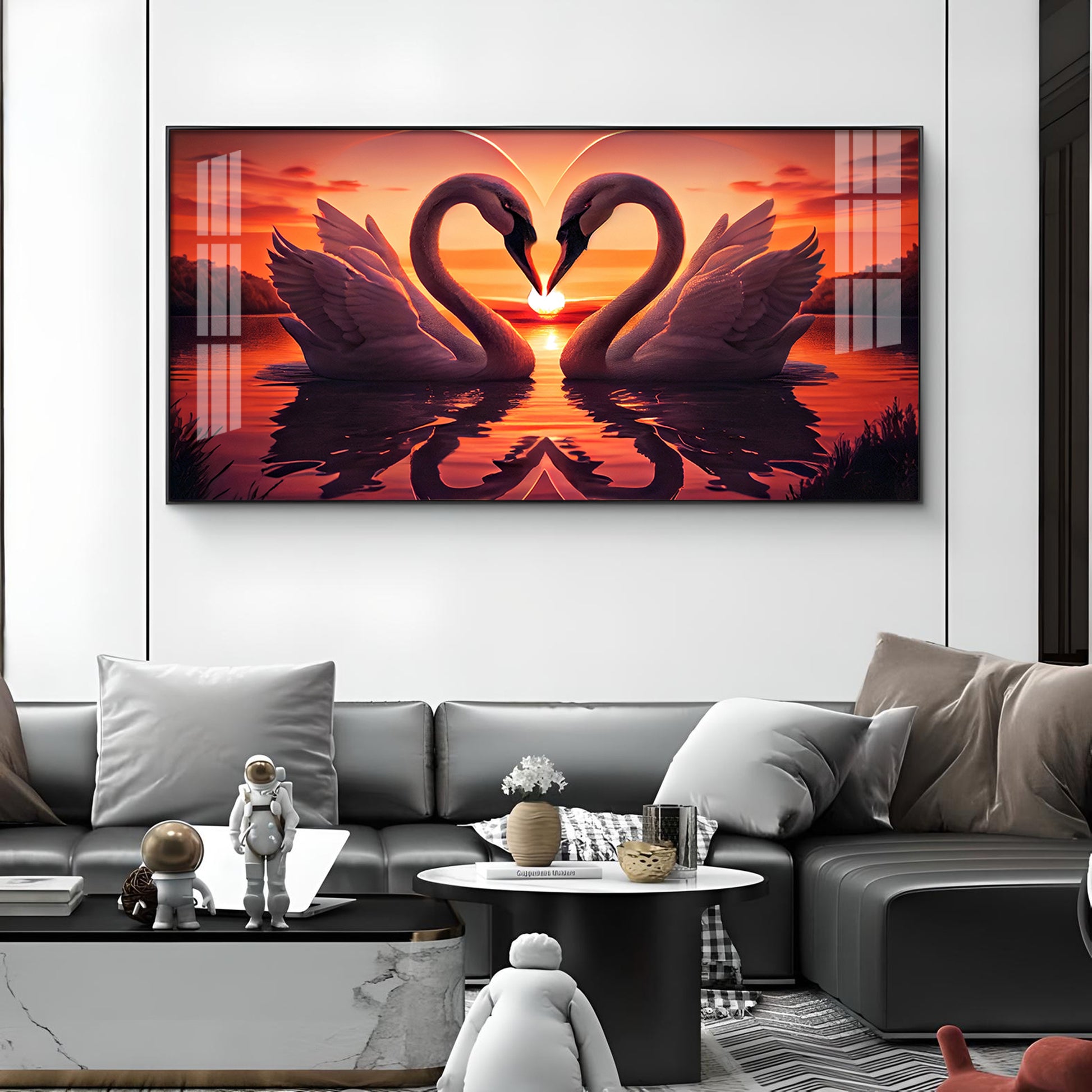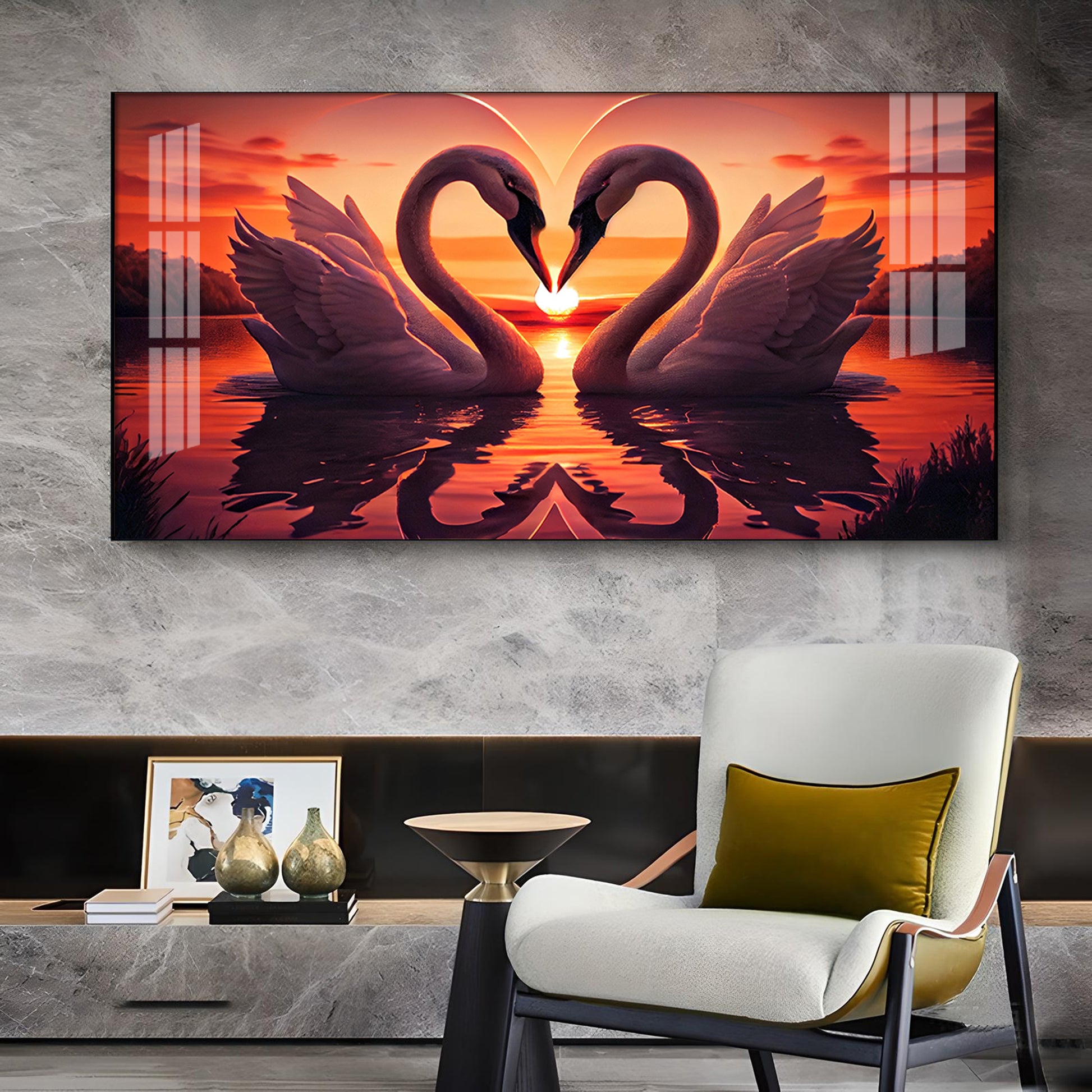 Swan In Vibrant Affection Glass Finish Horizontal Wall Art