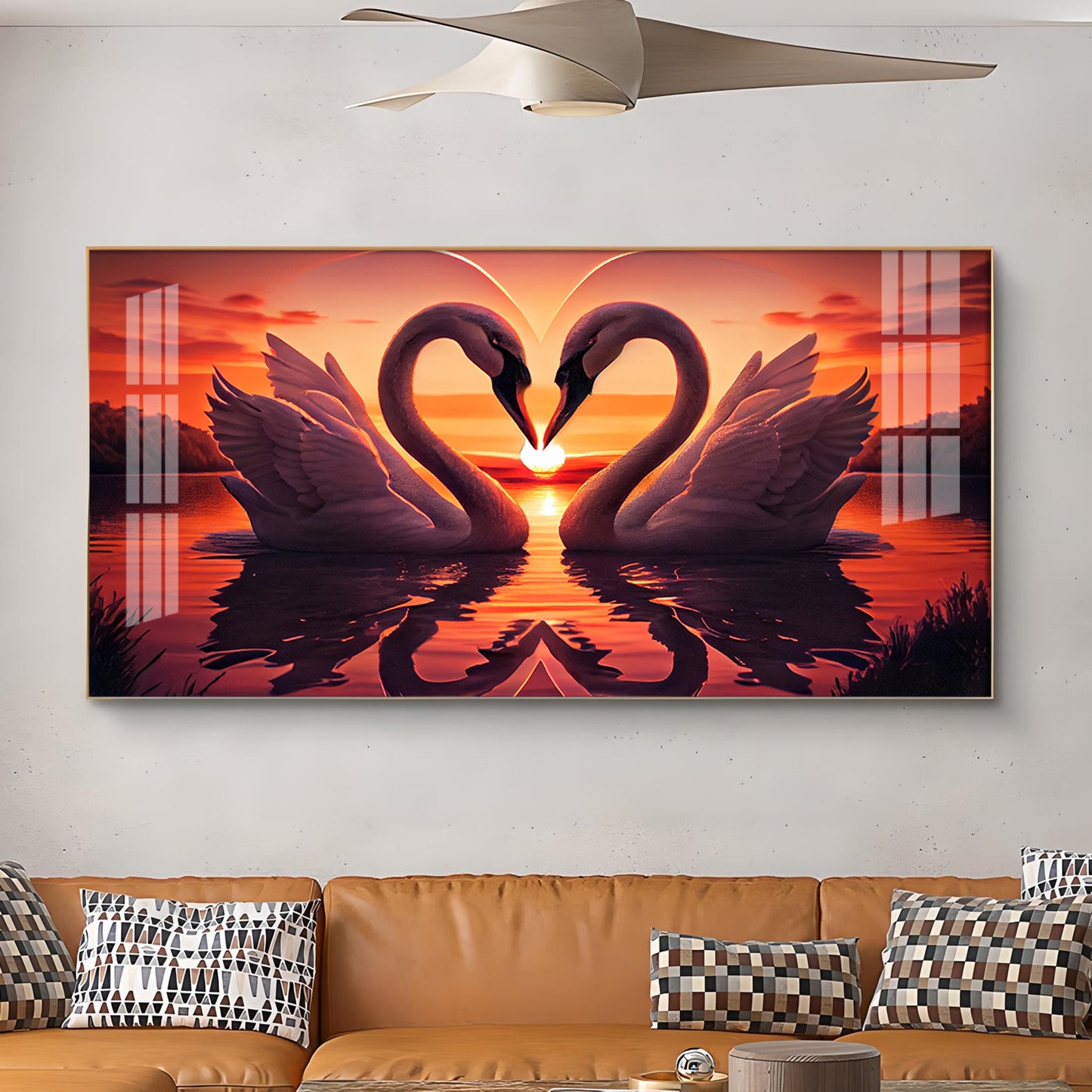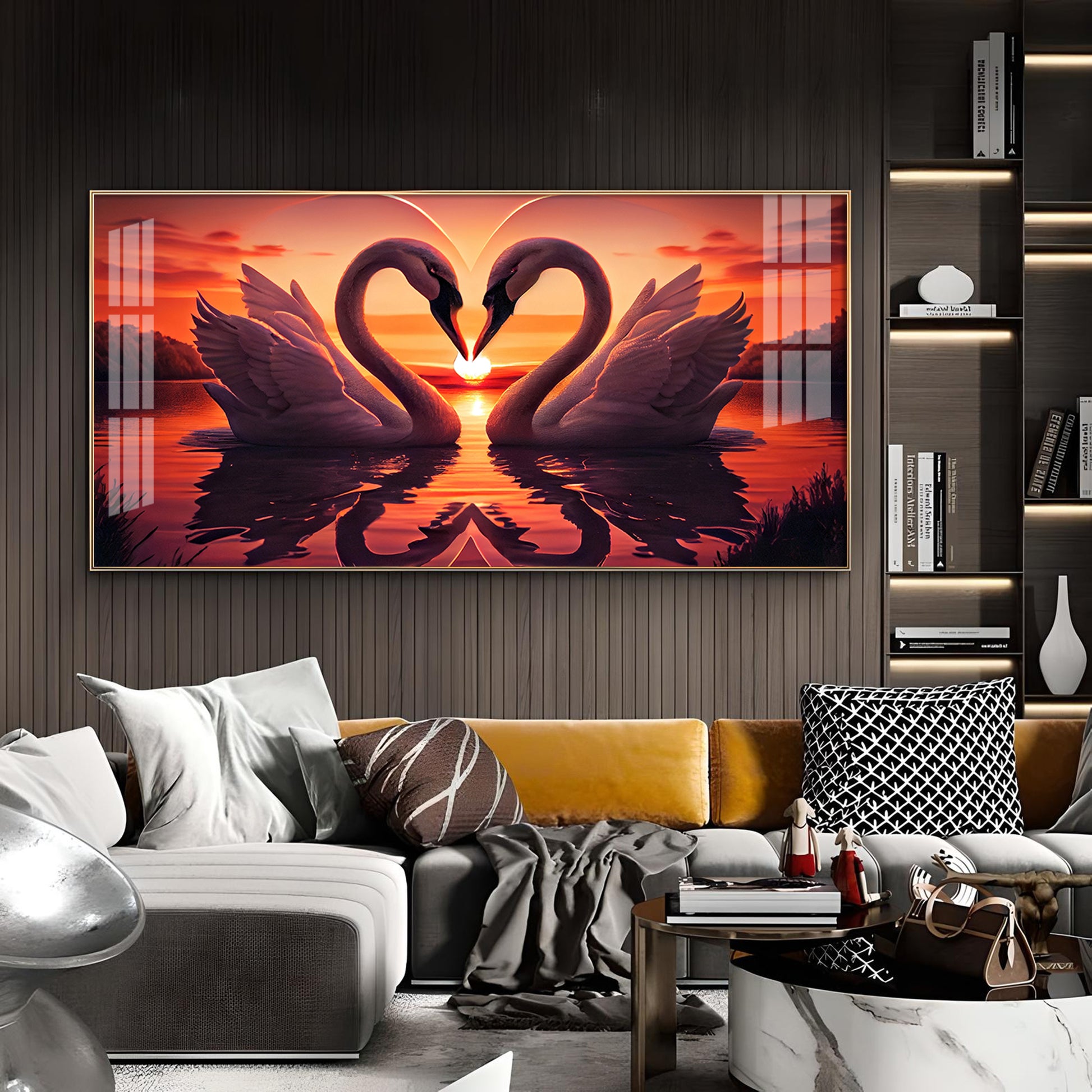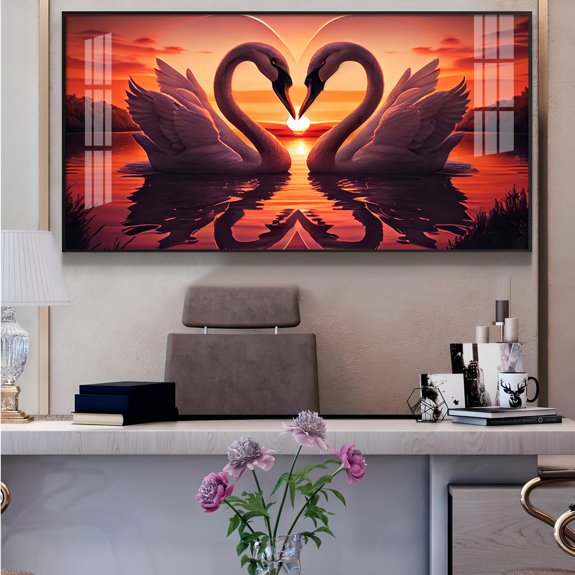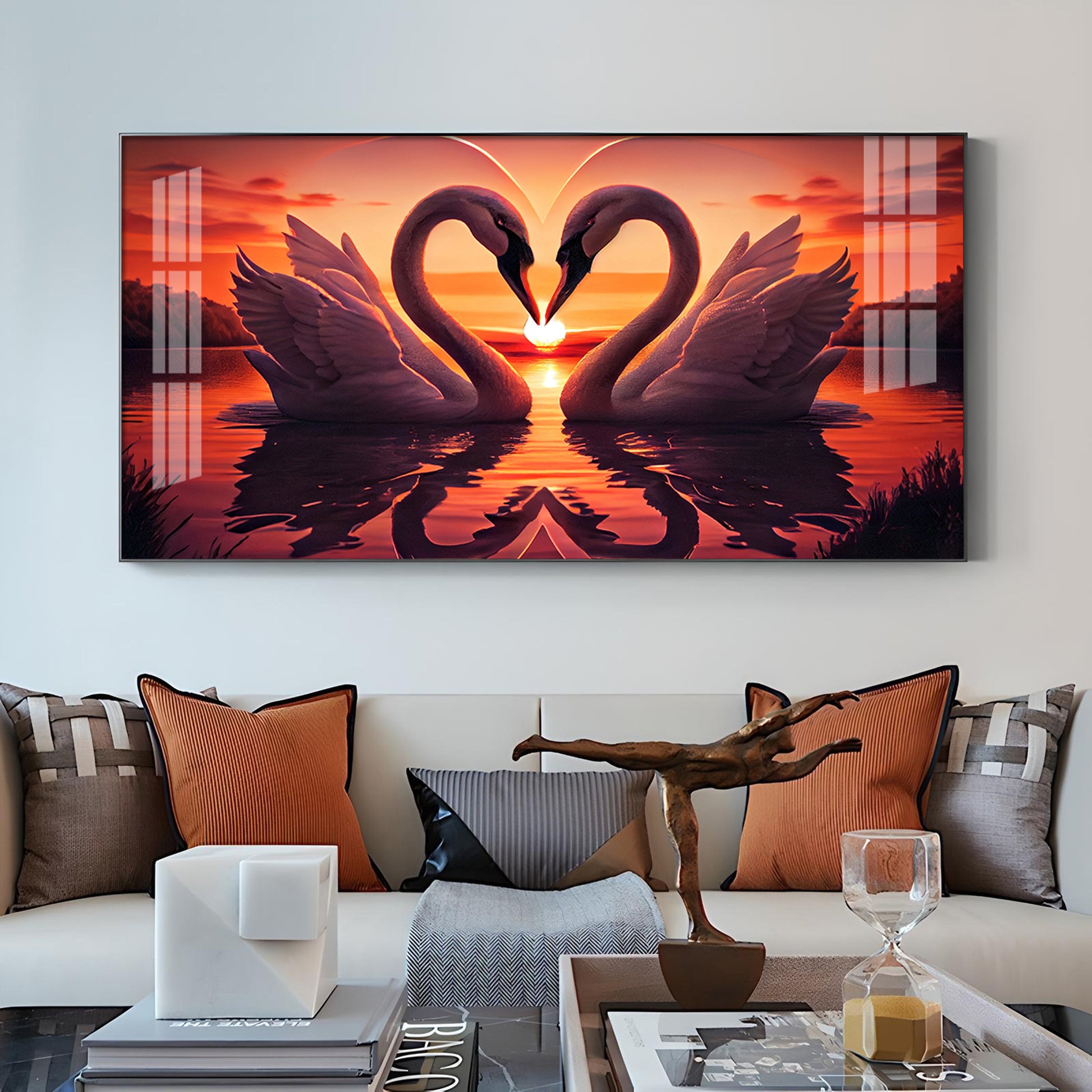 Swan In Vibrant Affection Glass Finish Horizontal Wall Art