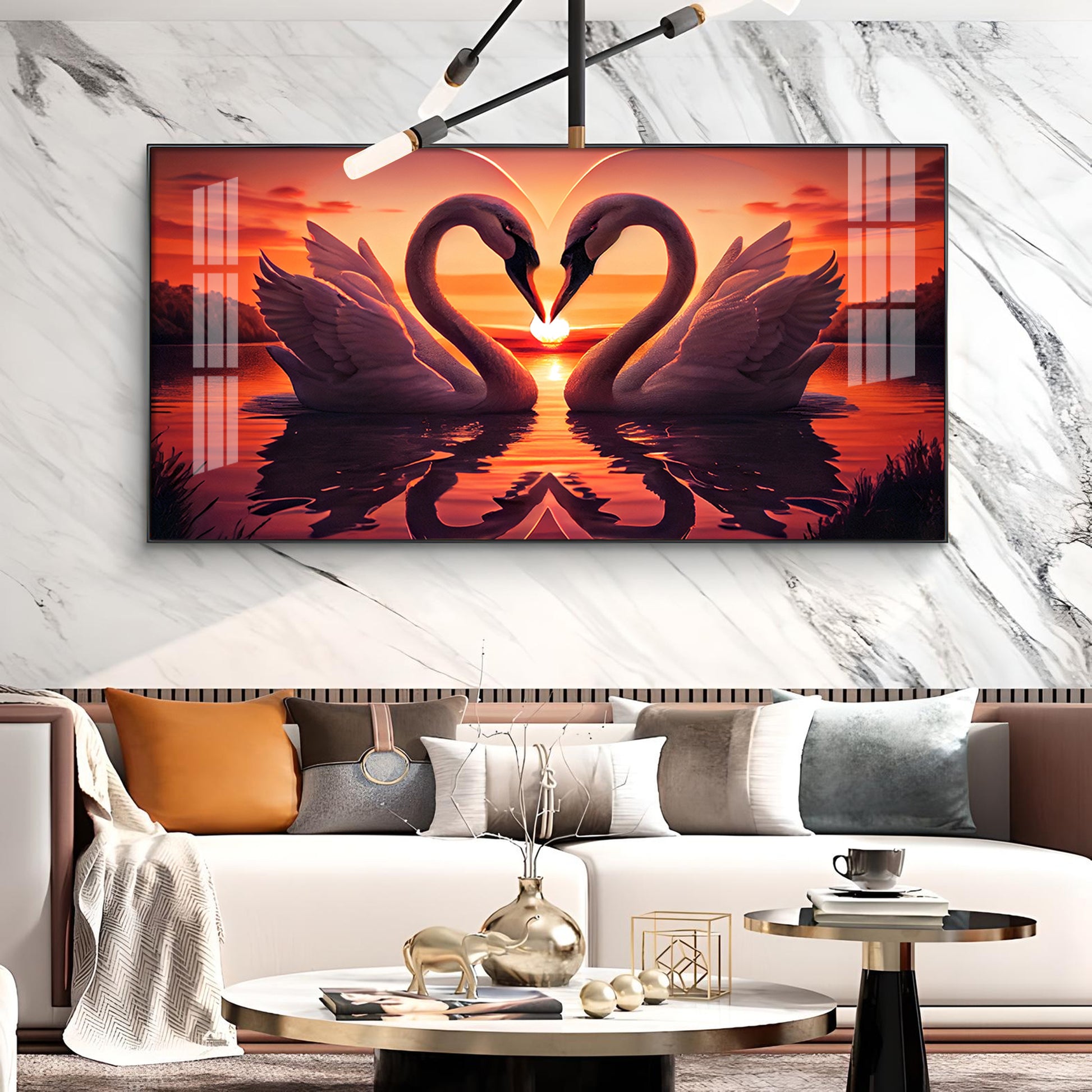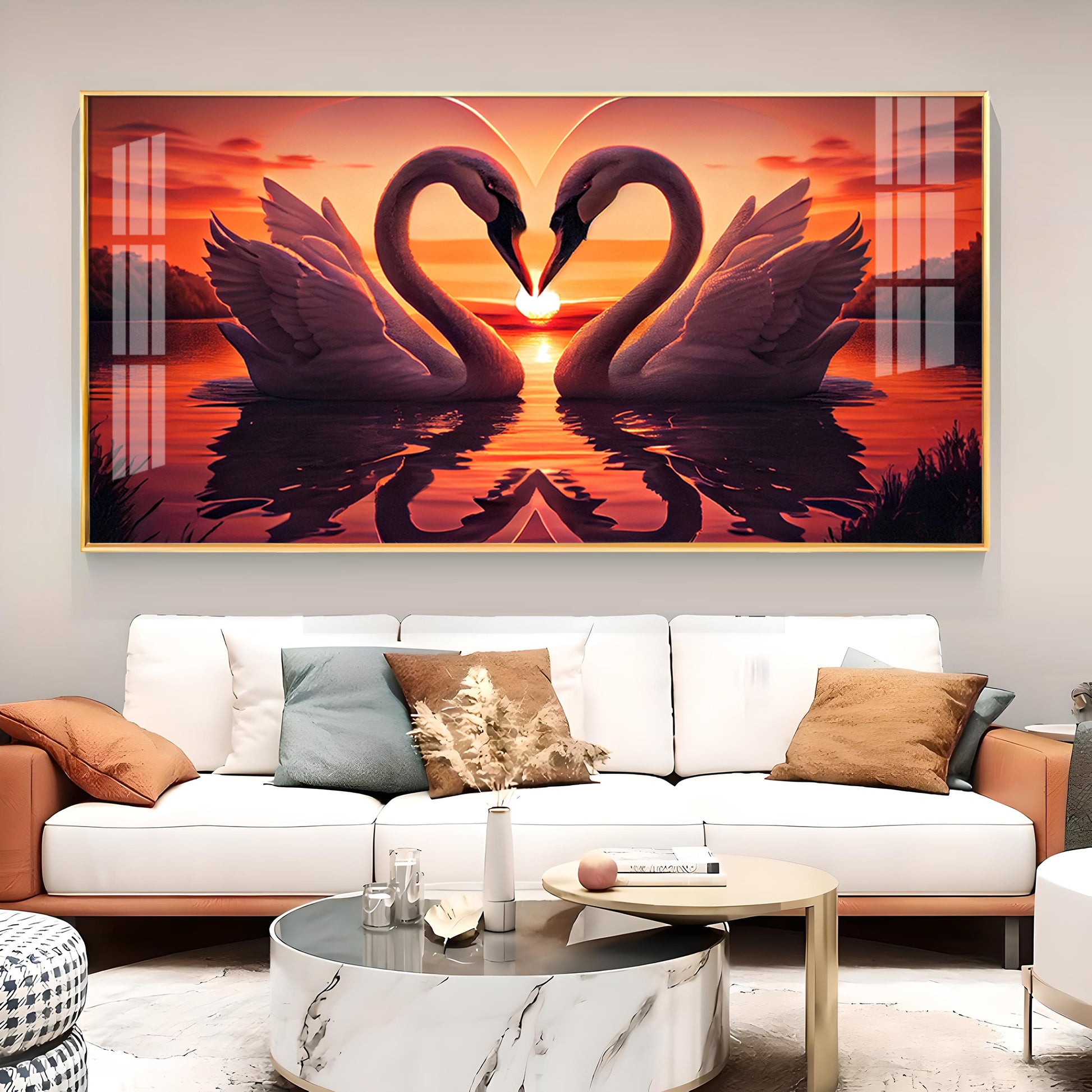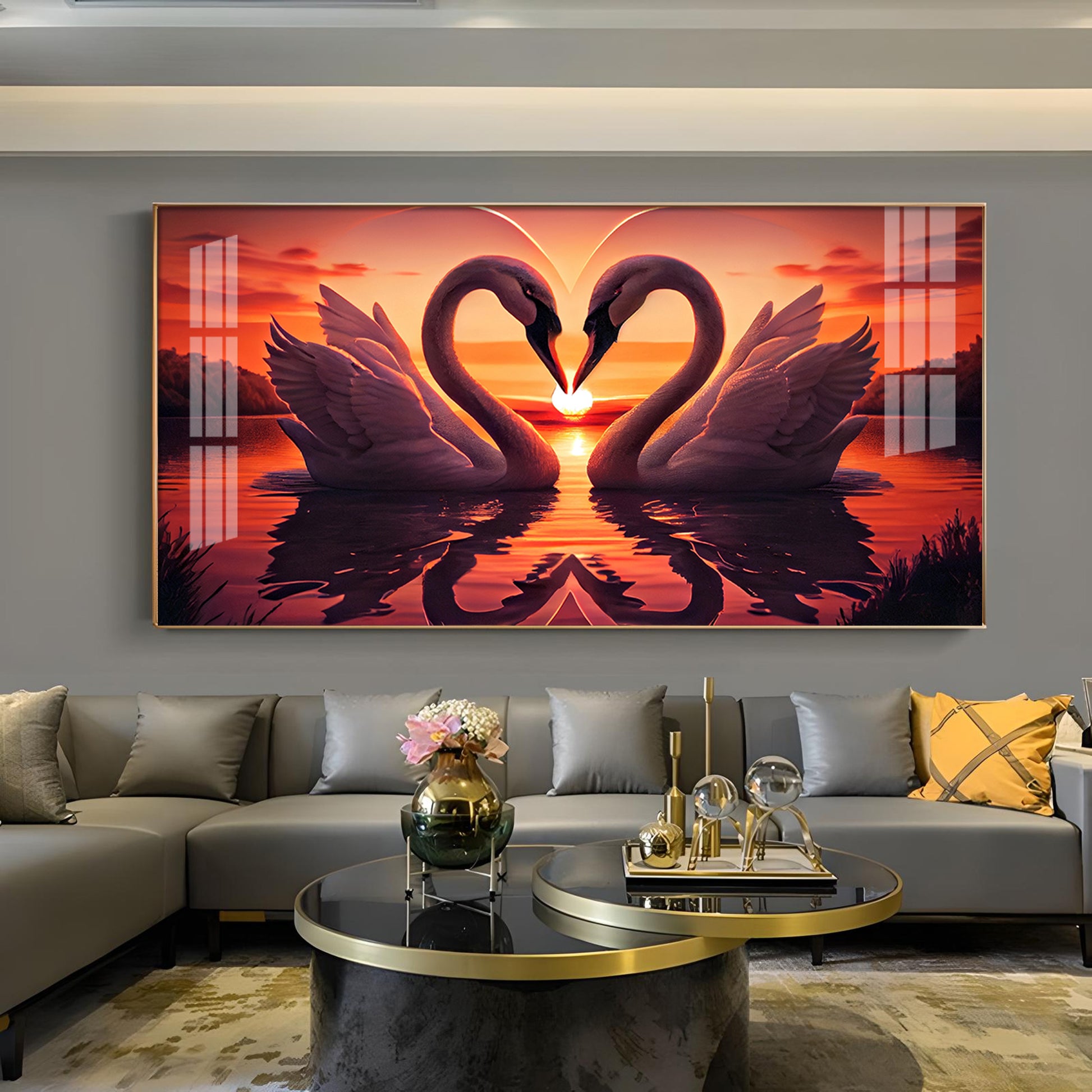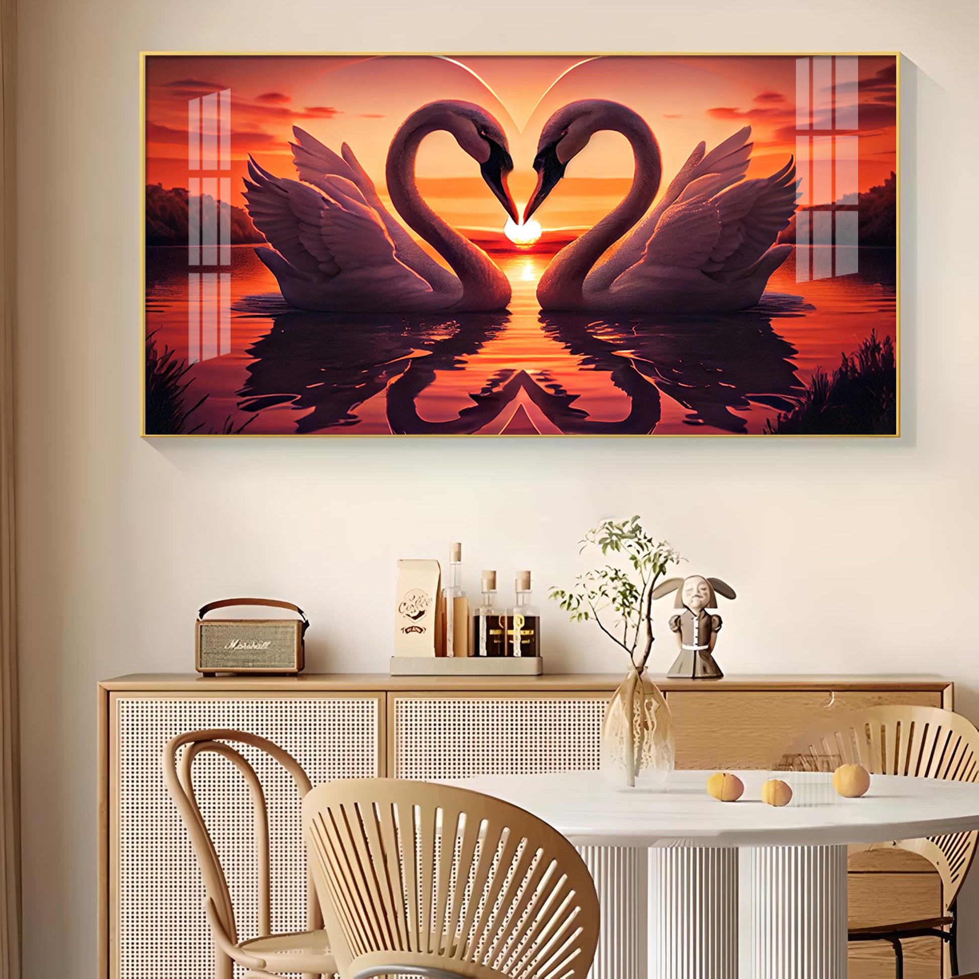 Swan In Vibrant Affection Glass Finish Horizontal Wall Art
