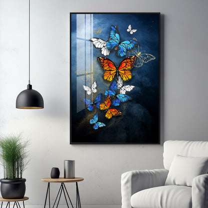 Symphony of Butterflies Glass Finish Vertical Wall Art