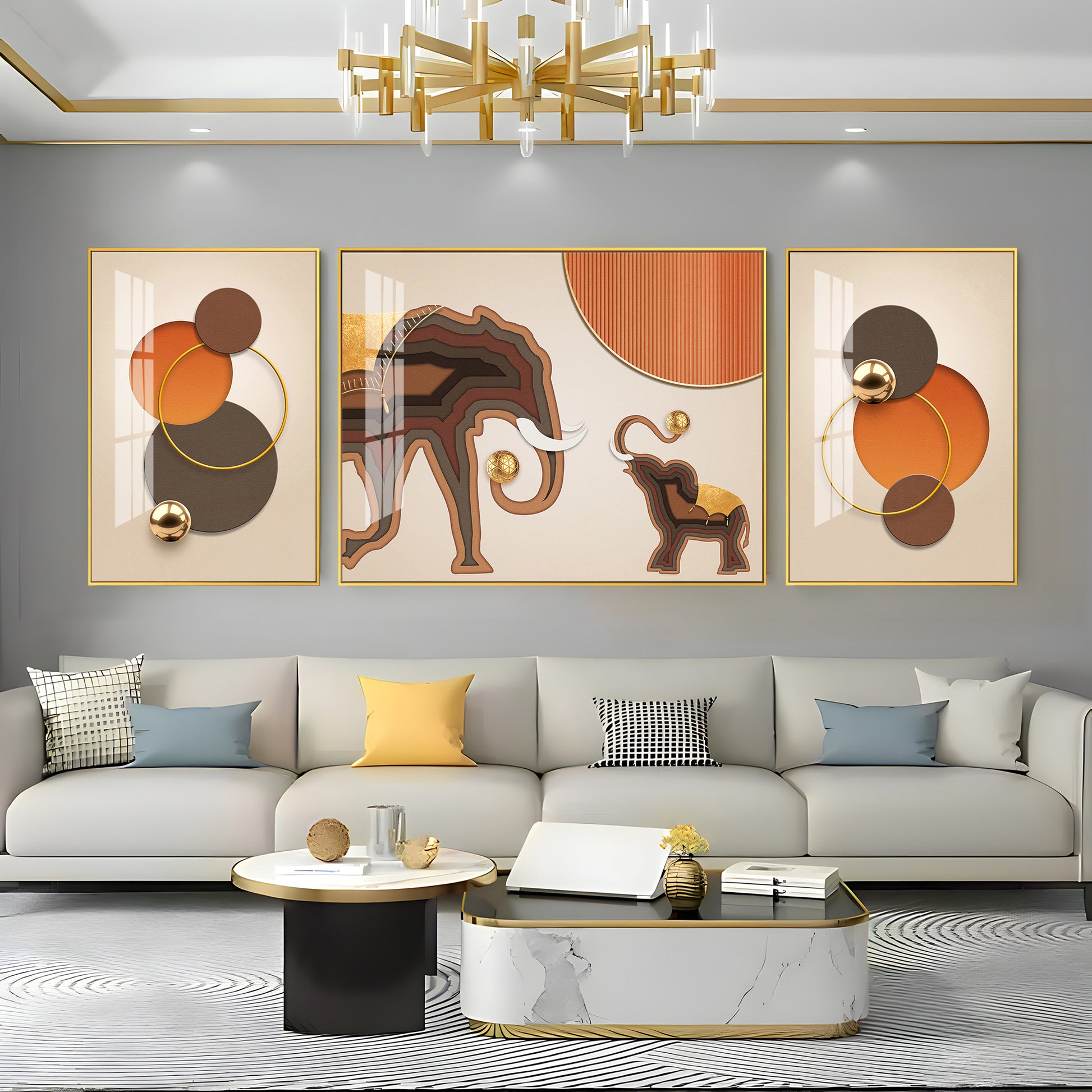 Trio of Elephant Glass Finish Wall Art (Set Of 3)