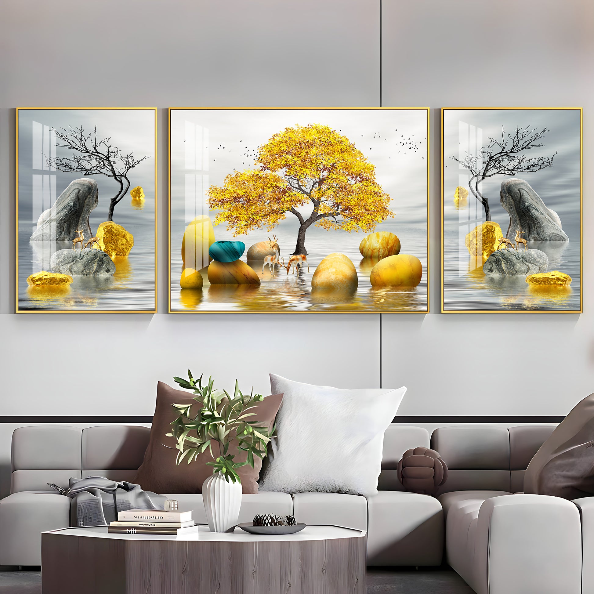 Trio of Tree and Tail Glass Finish Wall Art (Set Of 3)