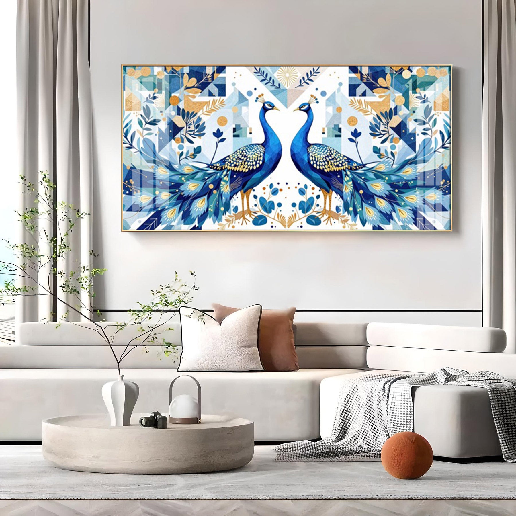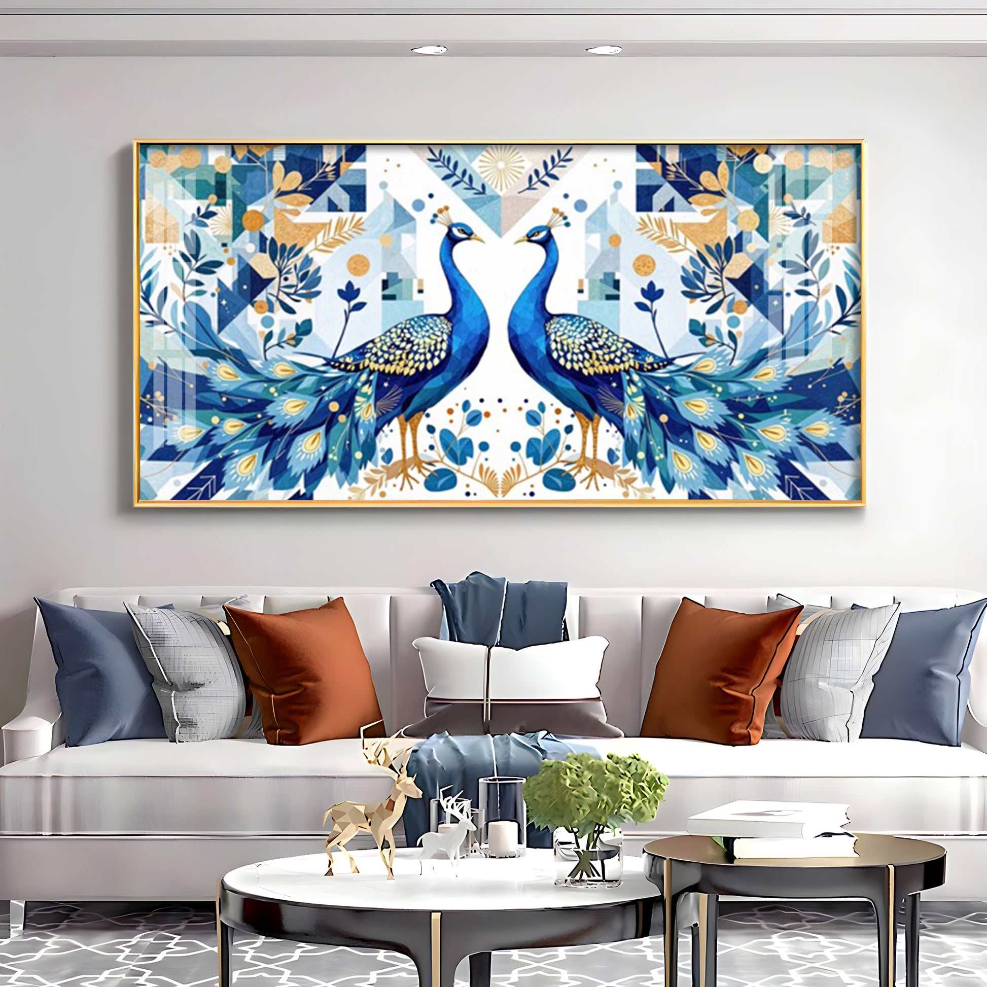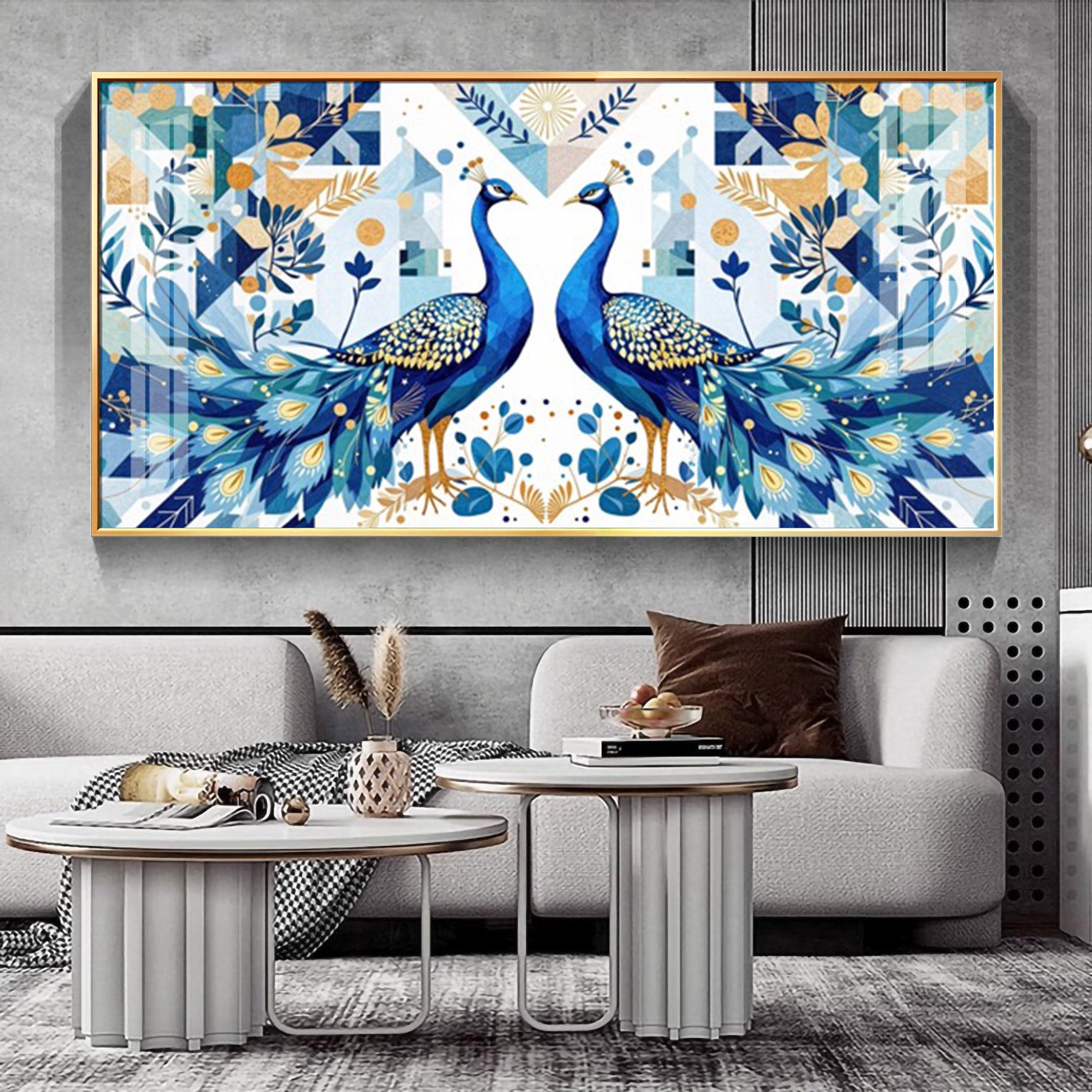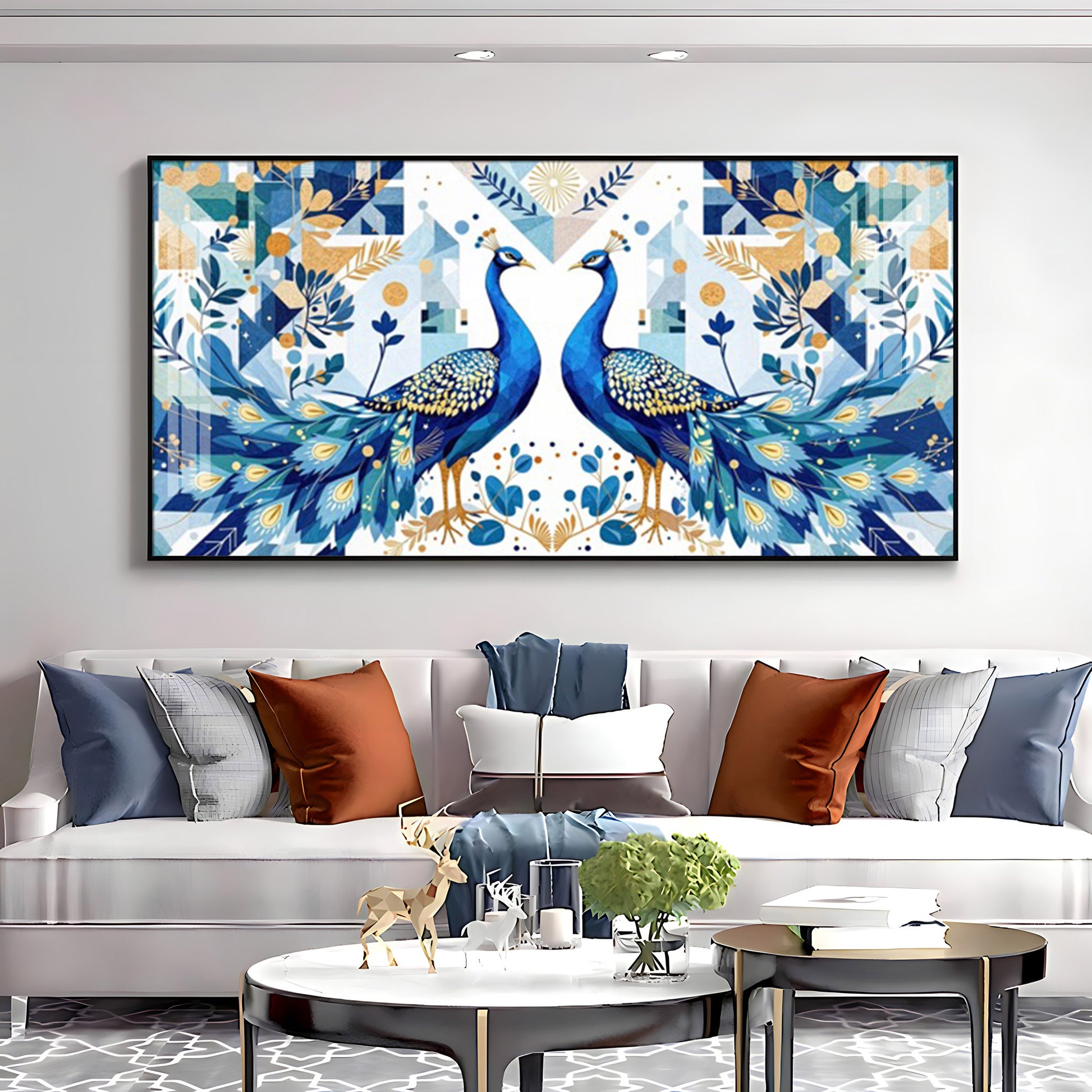 Two Peacock Looking Each Other Glass Finish Horizontal Wall Art
