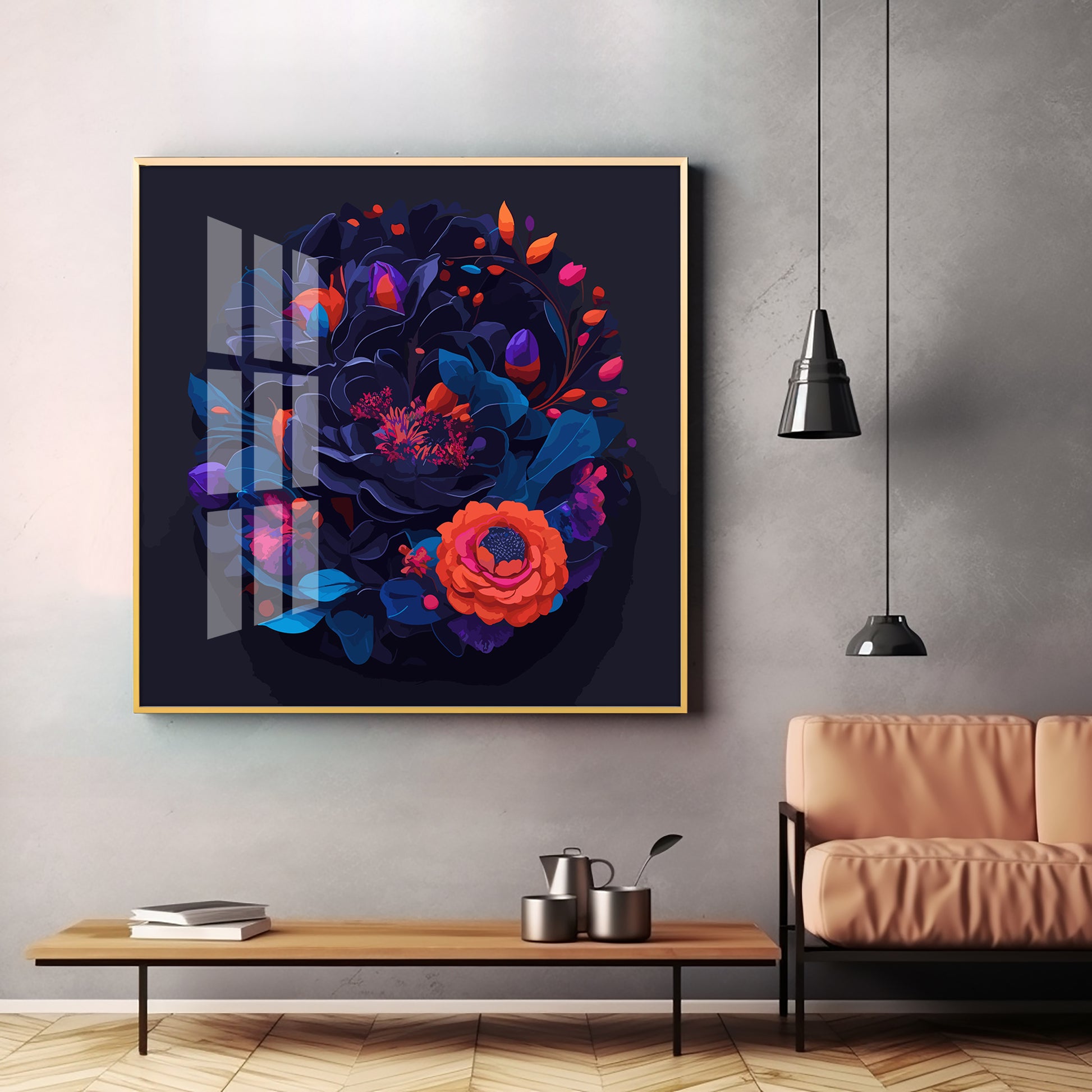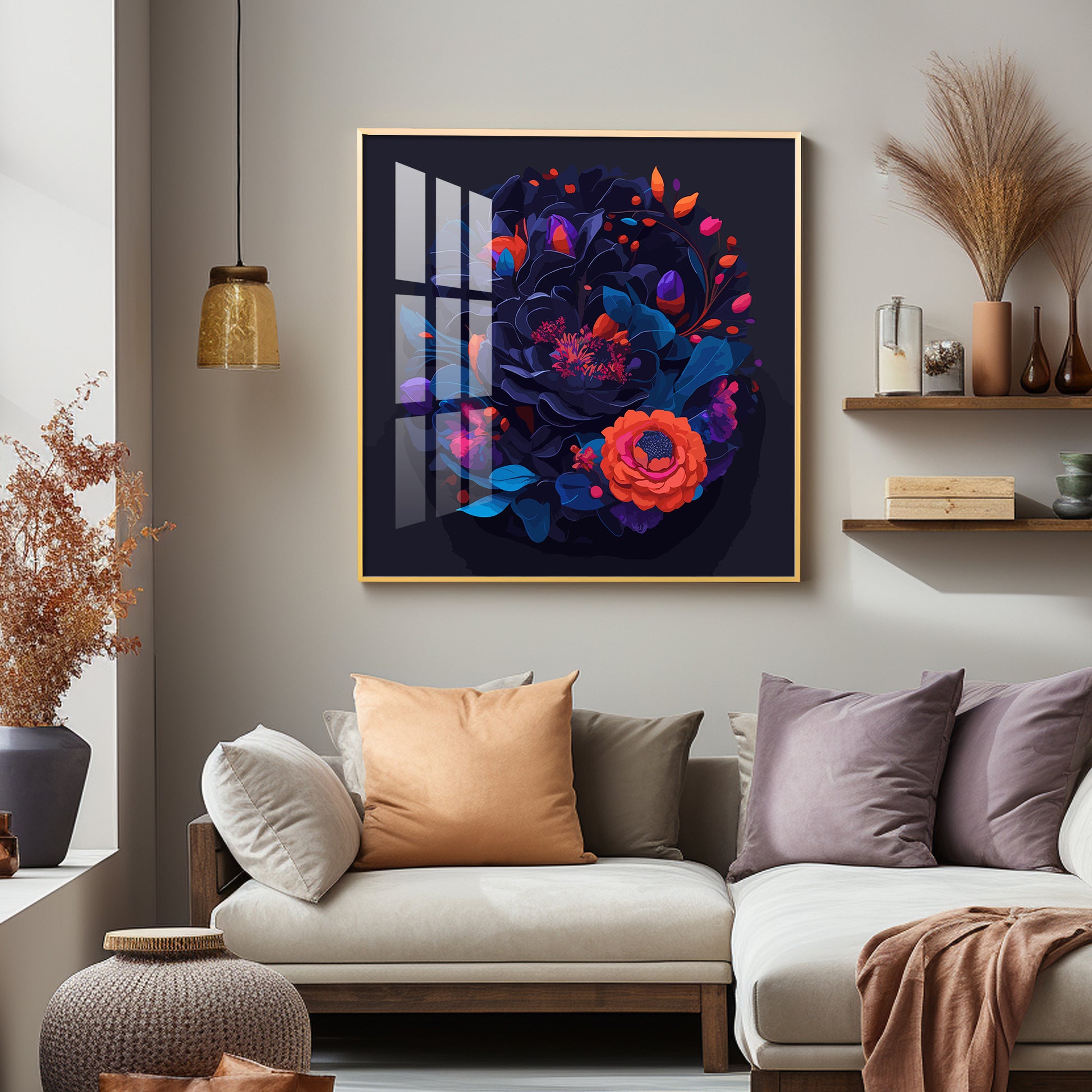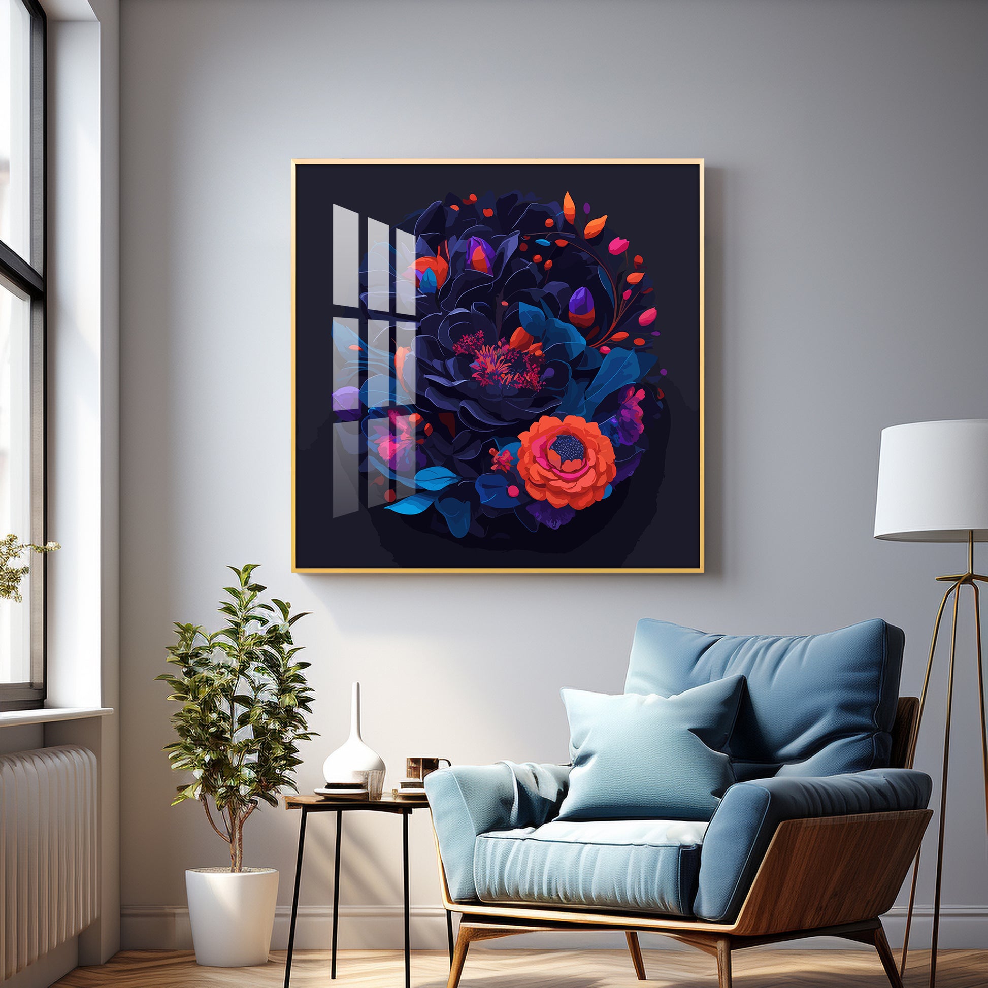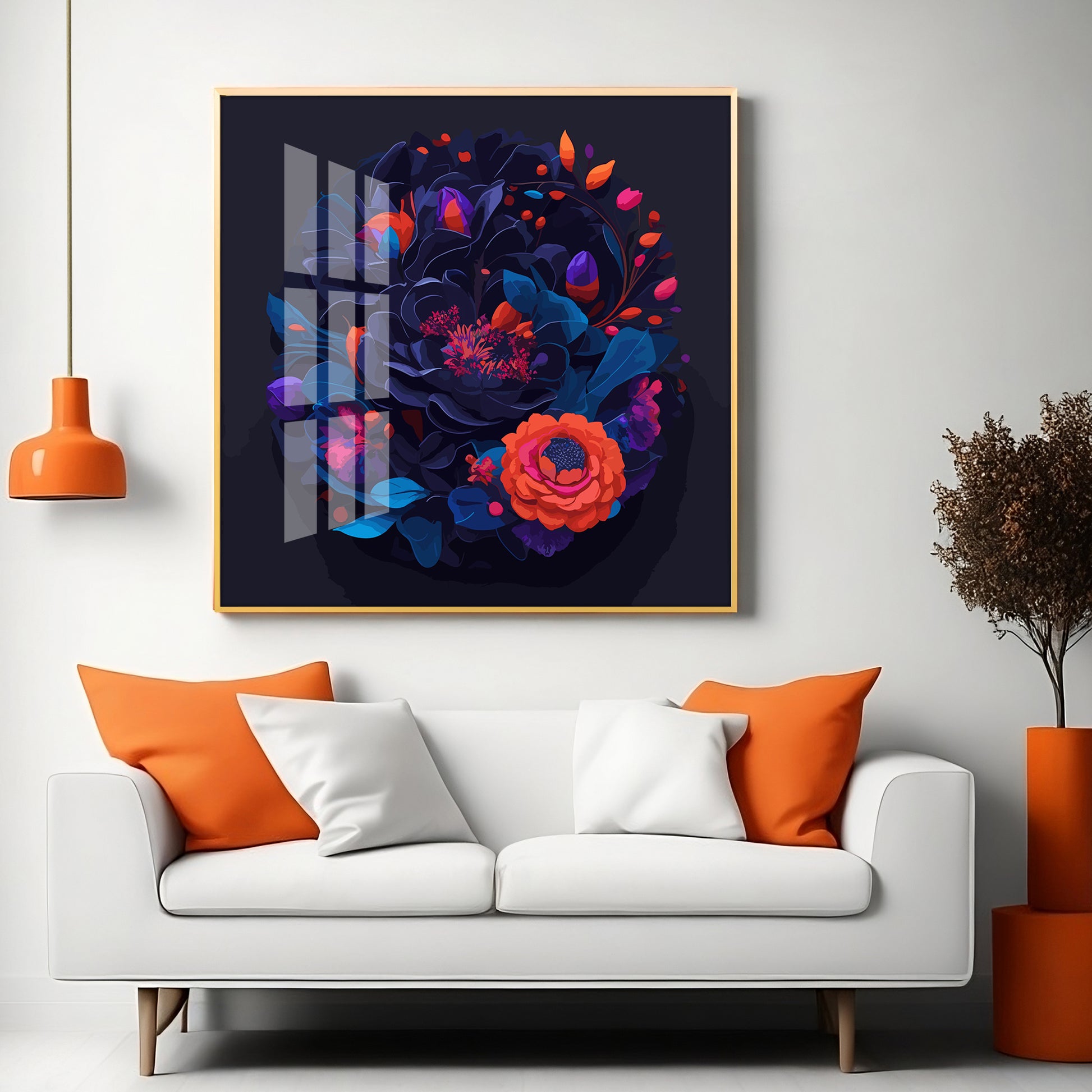 Vibrant Blossom Glass Finish Square Wall Art