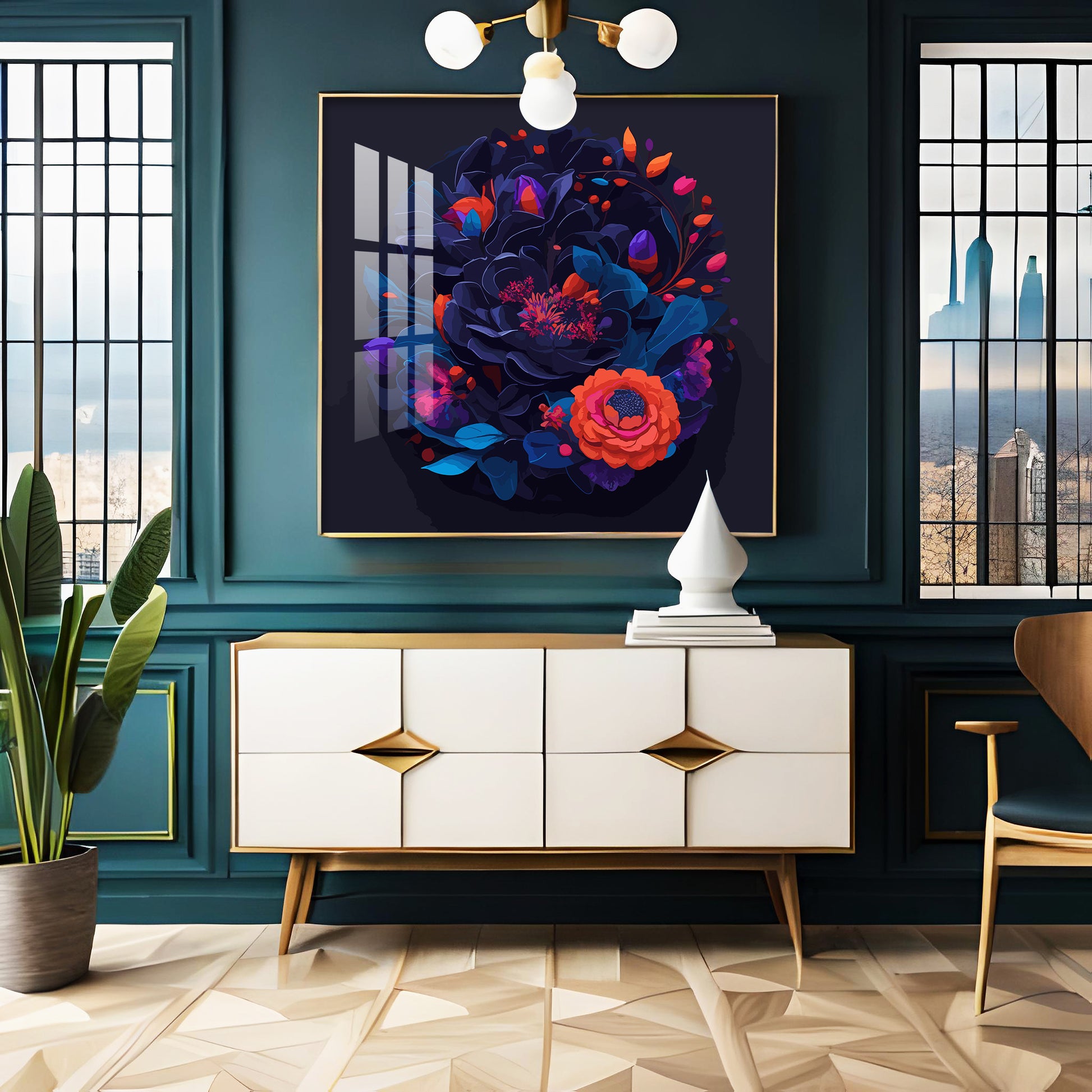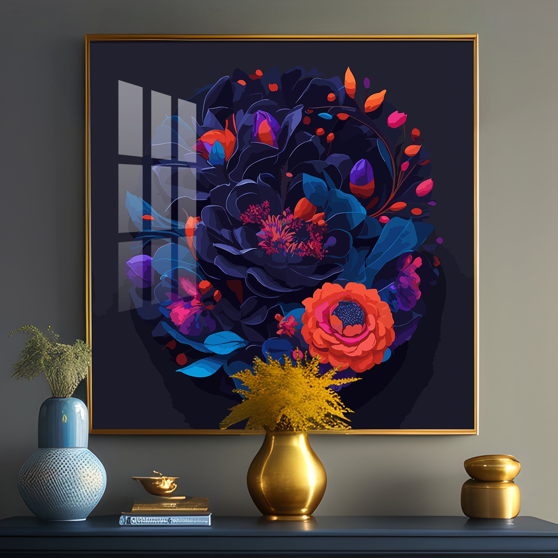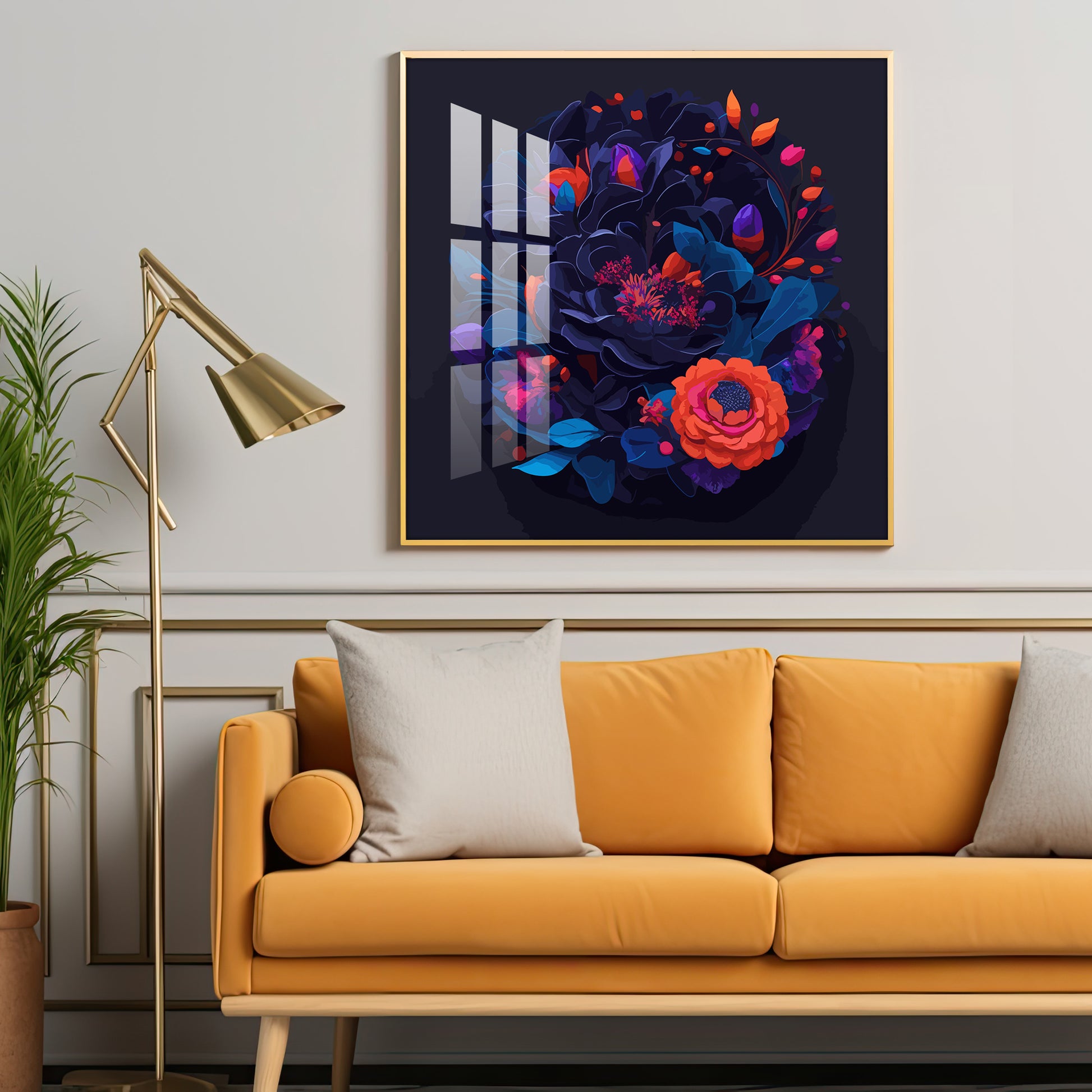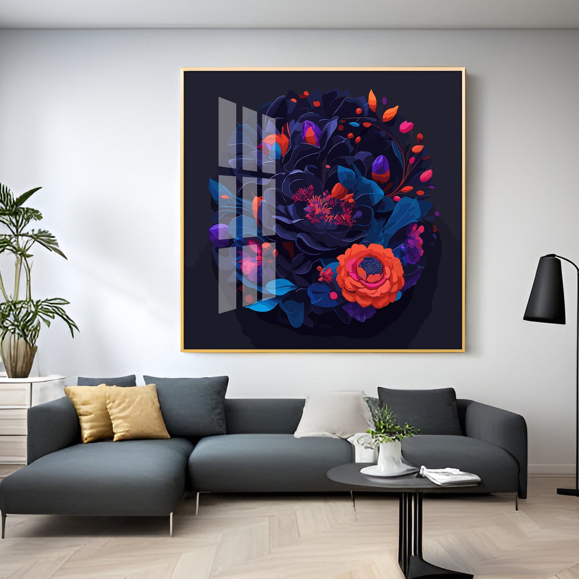 Vibrant Blossom Glass Finish Square Wall Art
