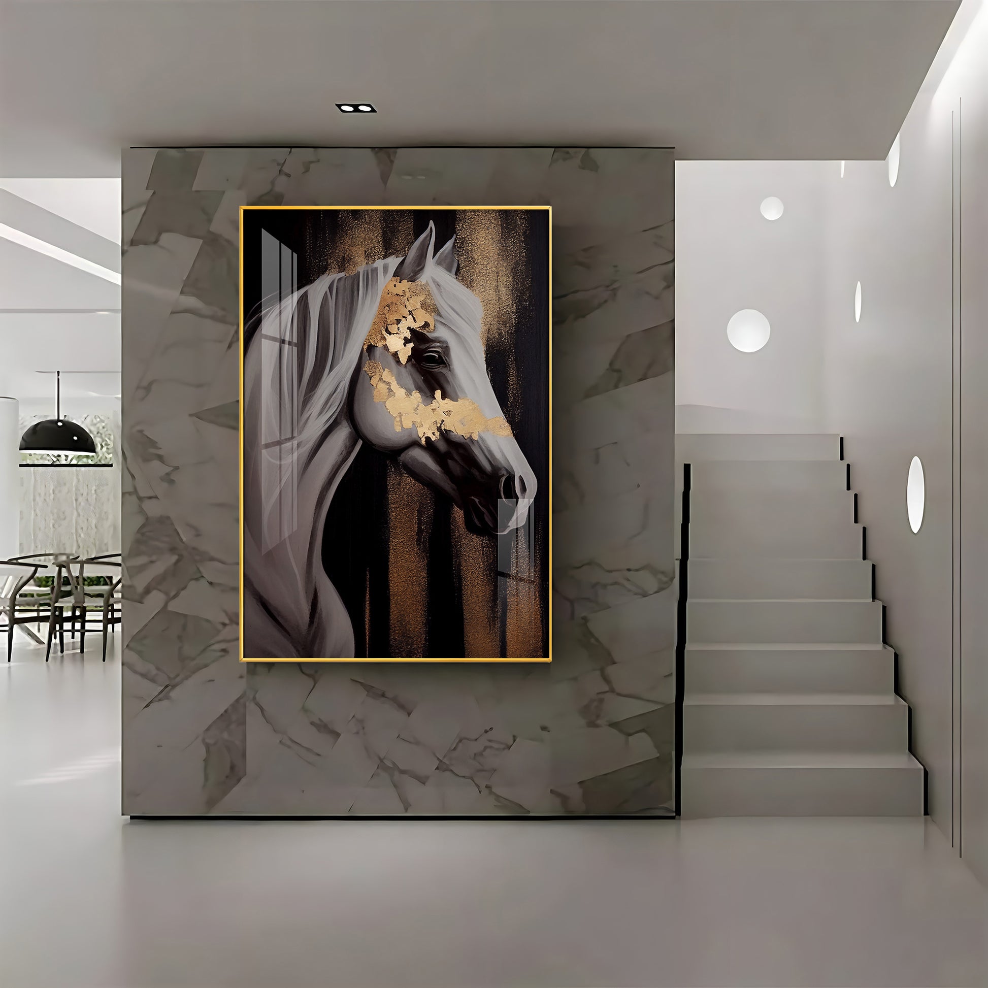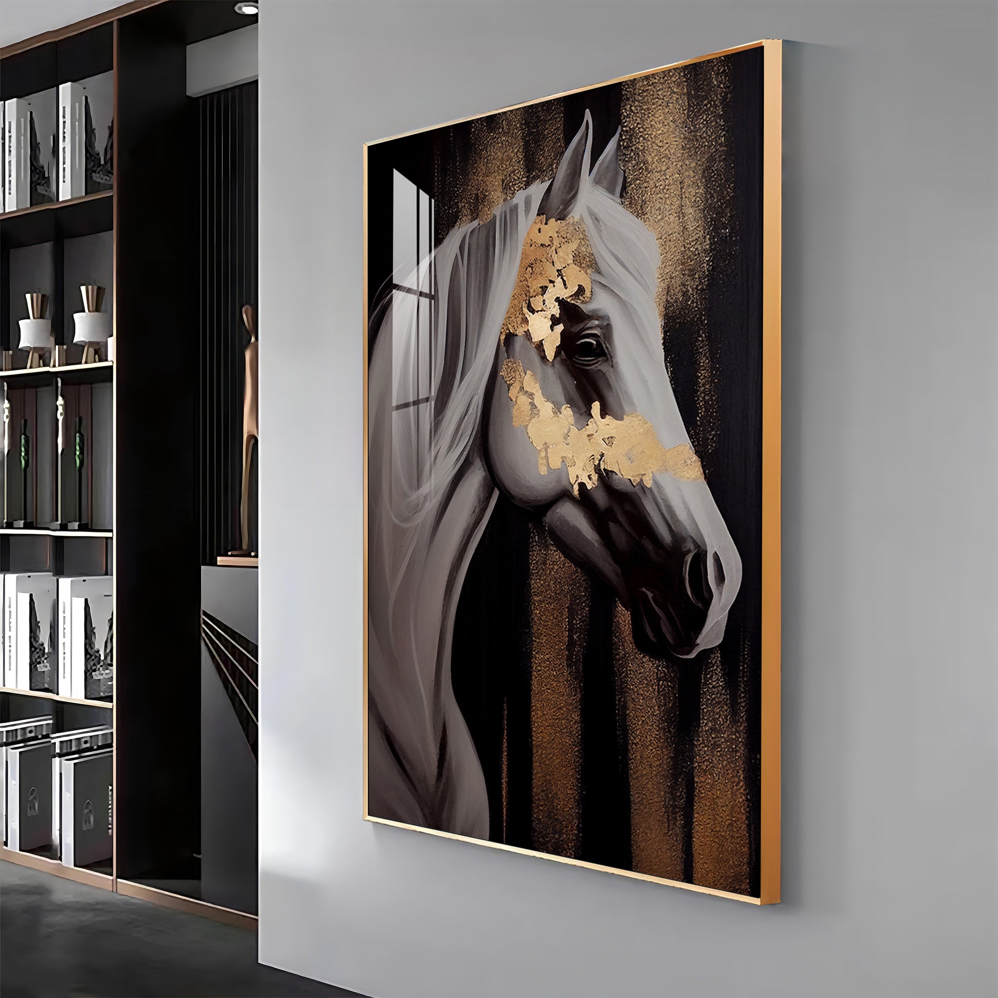 Whispers of Gold Horse Glass Finish Vertical Wall Art