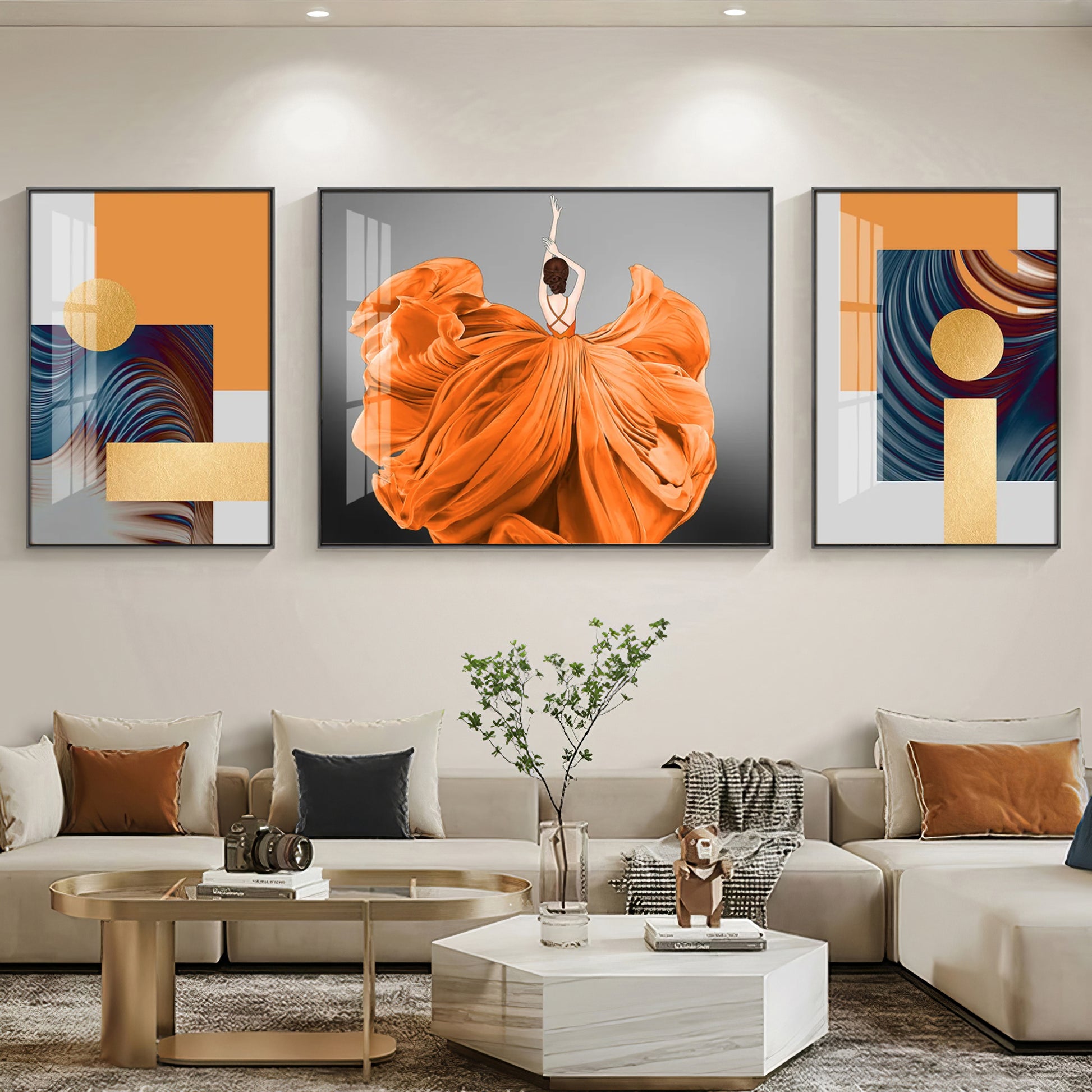 Women In Organce Elegance Glass Finish Wall Art (Set Of 3)